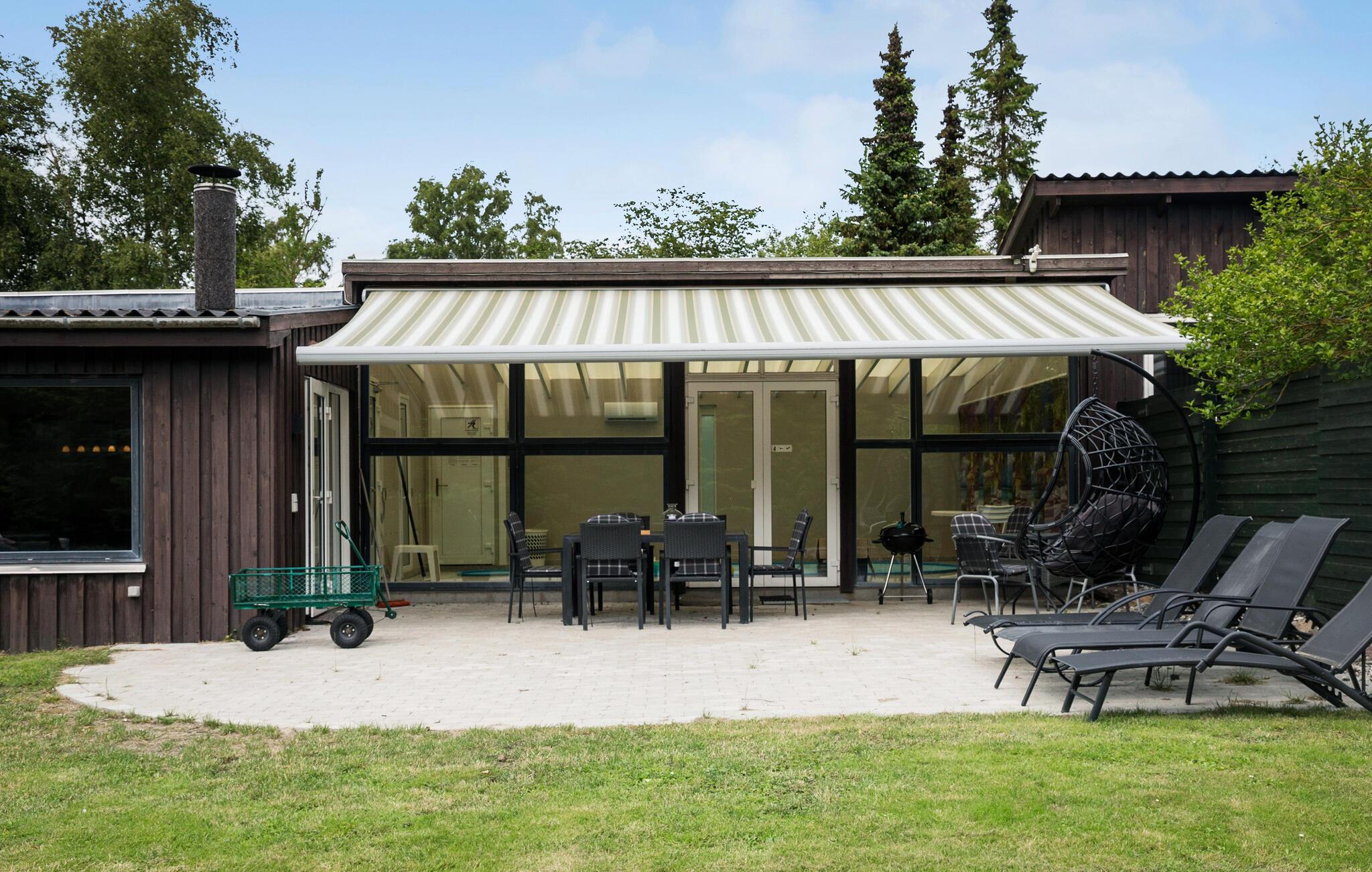 Fra både stuen og poolrummet er der adgang til en dejlig sydvestvendt terrasse, hvor der er monteret en elektrisk markise. Huset ligger for enden af en blind vej og tæt ved aktiviteter, herunder 18 hullers golfbane, minigolf, bowling, restauranter og gokartcenter.