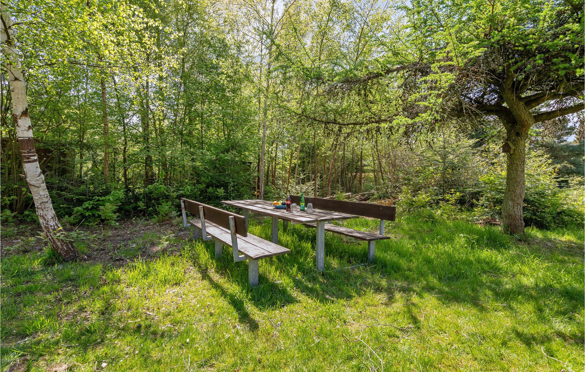 Enkelt indrettet sommerhus med tilhørende udestue beliggende på en dejlig naturgrund med både sol og skygge og i gåafstand til strand og indkøb.