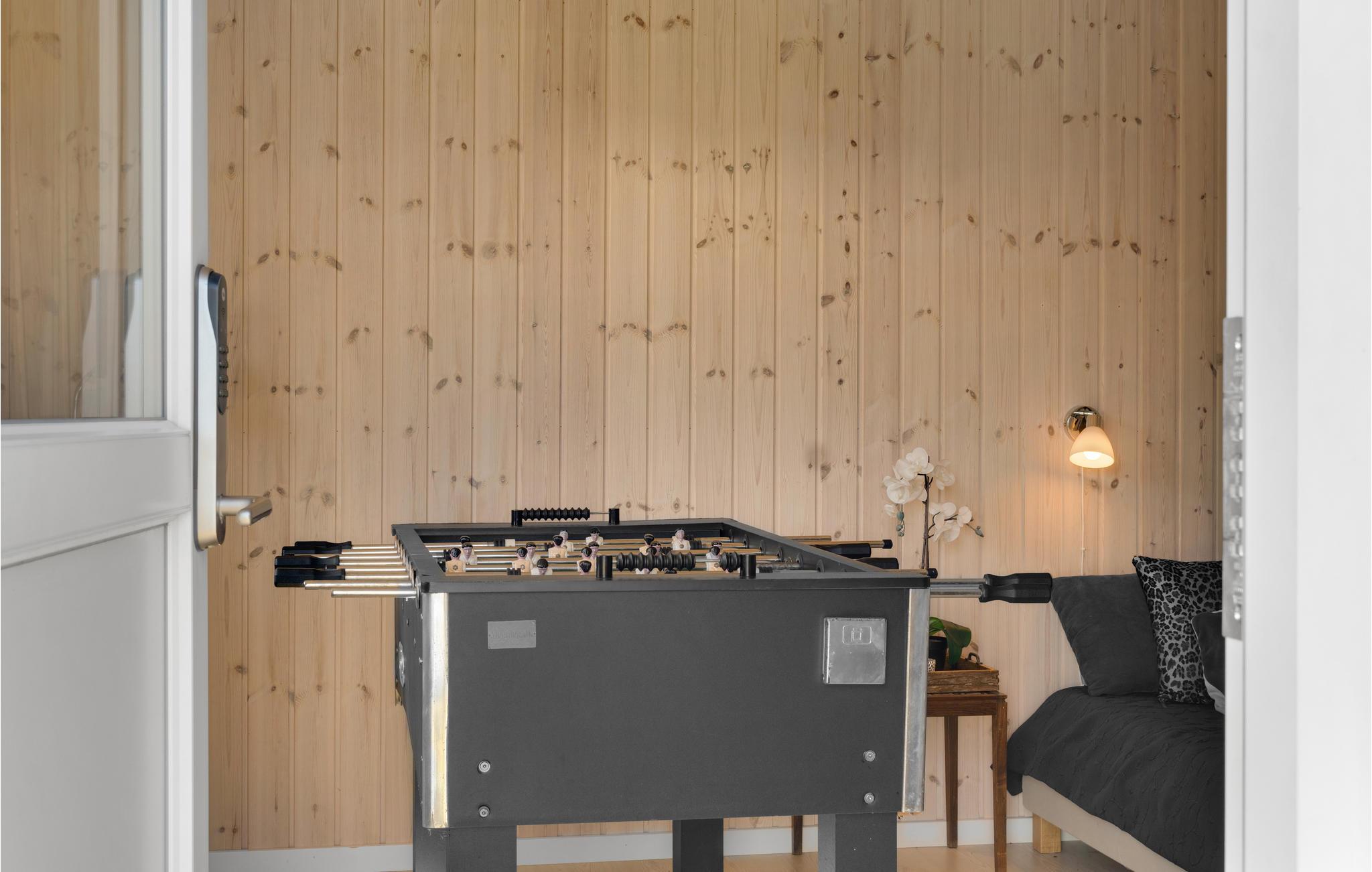 Husets aktivitetsrum er indrettet i det tilhørende anneks, hvor I har mulighed for at spille bordfodbold. Takket være dobbeltsengen udgør annekset også et hyggeligt soverum. På grunden er der bl.a. bålplads, trampolin og gynge. Alt i alt et fantastisk feriehus, som bare skal opleves.