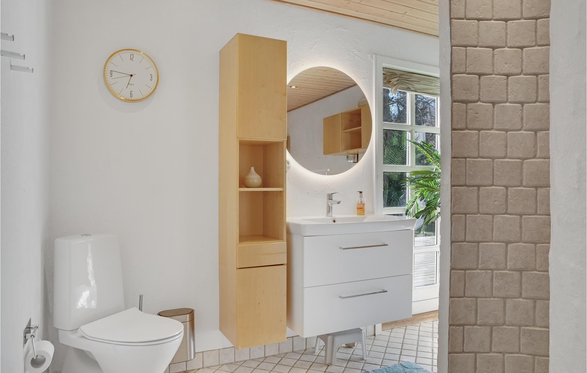 I de lyse rum i dette komfortable sommerhus kan I slappe af med hele familien i stilfulde omgivelser. Den moderne indretning sikrer en hjemlig atmosfære, og de mange sprossede vinduer tillader et smukt lysindfald i husets opholdsstue. Lav mad her med udsigt til det fri og nyd måltiderne sammen ved det lange spisebord. Føl jer tilpas senere i den rummelige sofa, efter en dejlig dag på stranden eller på en udflugt. Rund dagen af med en tur i saunaen, hvor I kan sidde behageligt sammen og komme helt ned i gear.