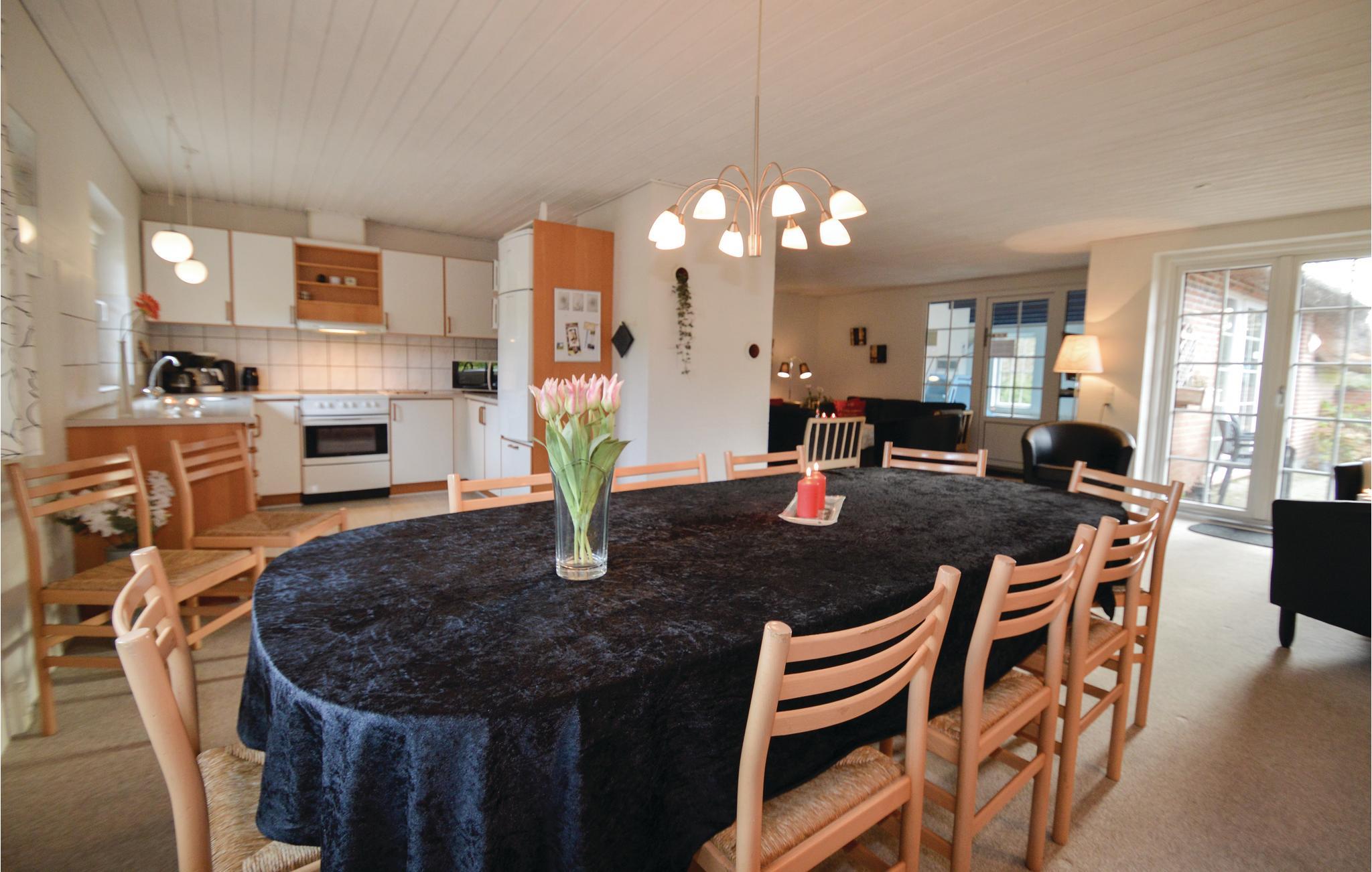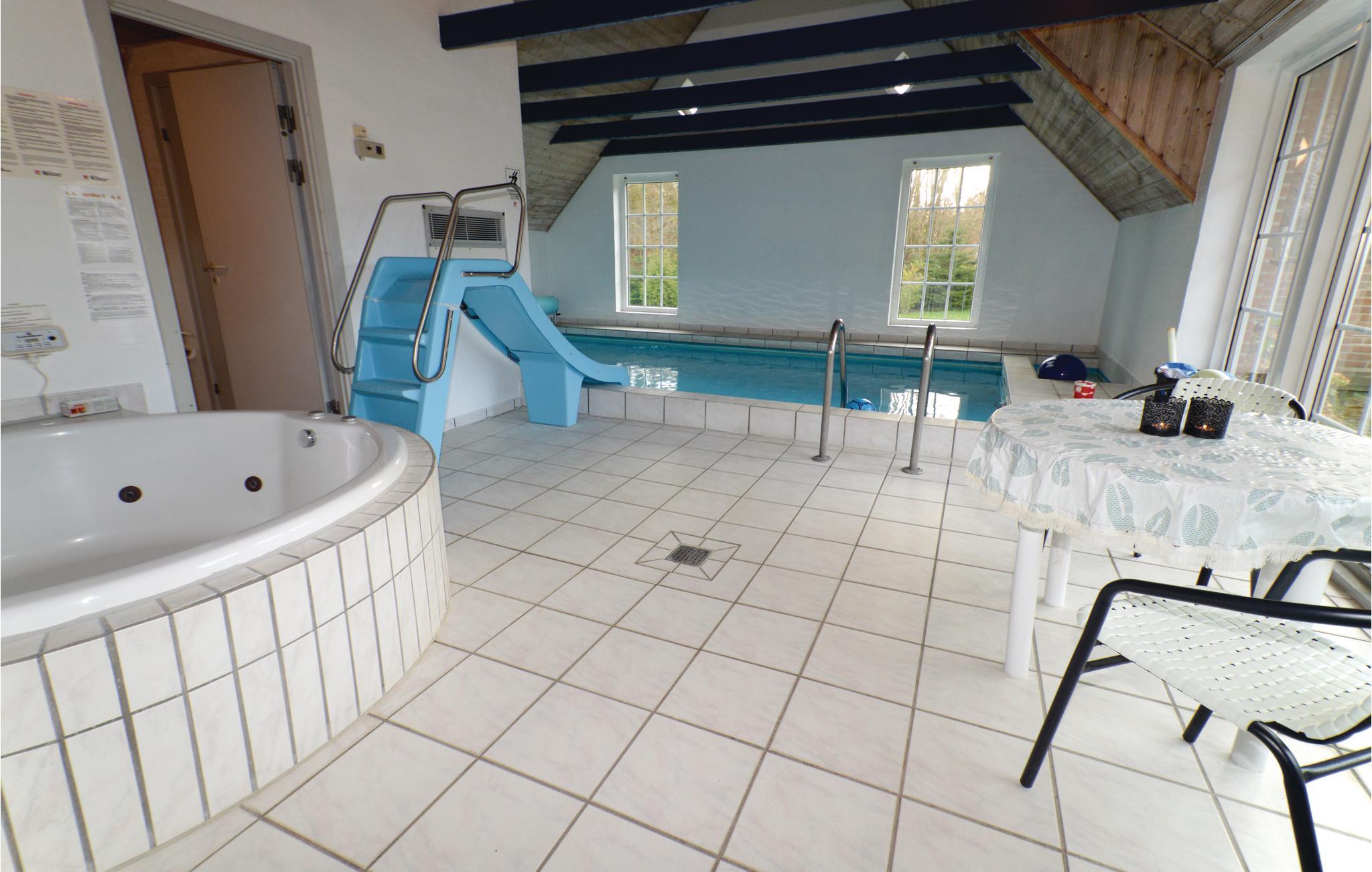 Ved en af de bedste badestrande og i et af de mest attraktive områder i Danmark ligger dette flotte, stråtækte feriehus. Huset er lyst og eksklusivt samt personligt indrettet med en dejlig stue som oser af hygge, ikke mindst når der er tændt op i brændeovnen. Der er en stor poolafdeling med swimmingpool med vandrutsjebane og lille babypool samt skønt spabad med plads til fire pers. og sauna. Der er glasdøre mellem poolafdelingen og det kombinerede opholdsstue/køkken. Derved er der rig mulighed for at følge med i, hvad der foregår i og omkring swimmingpoolen. Fra den veludstyrede stue med komfortable møbler har I udgang til en skøn stor gårdhave, hvor I kan nyde de lune feriedage eller en skøn aften ved grillen.