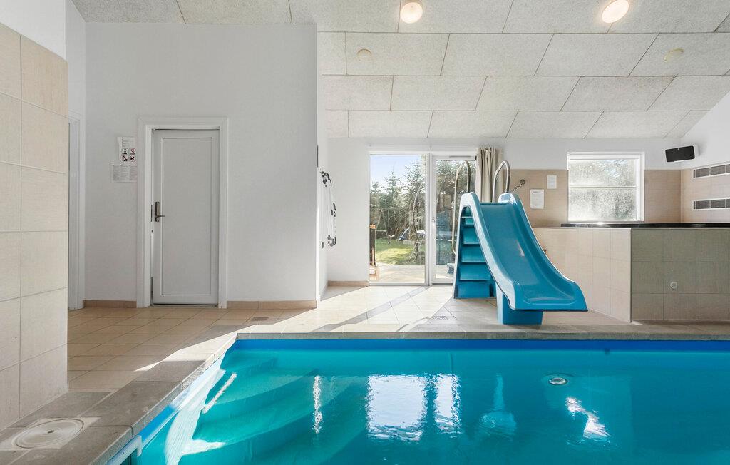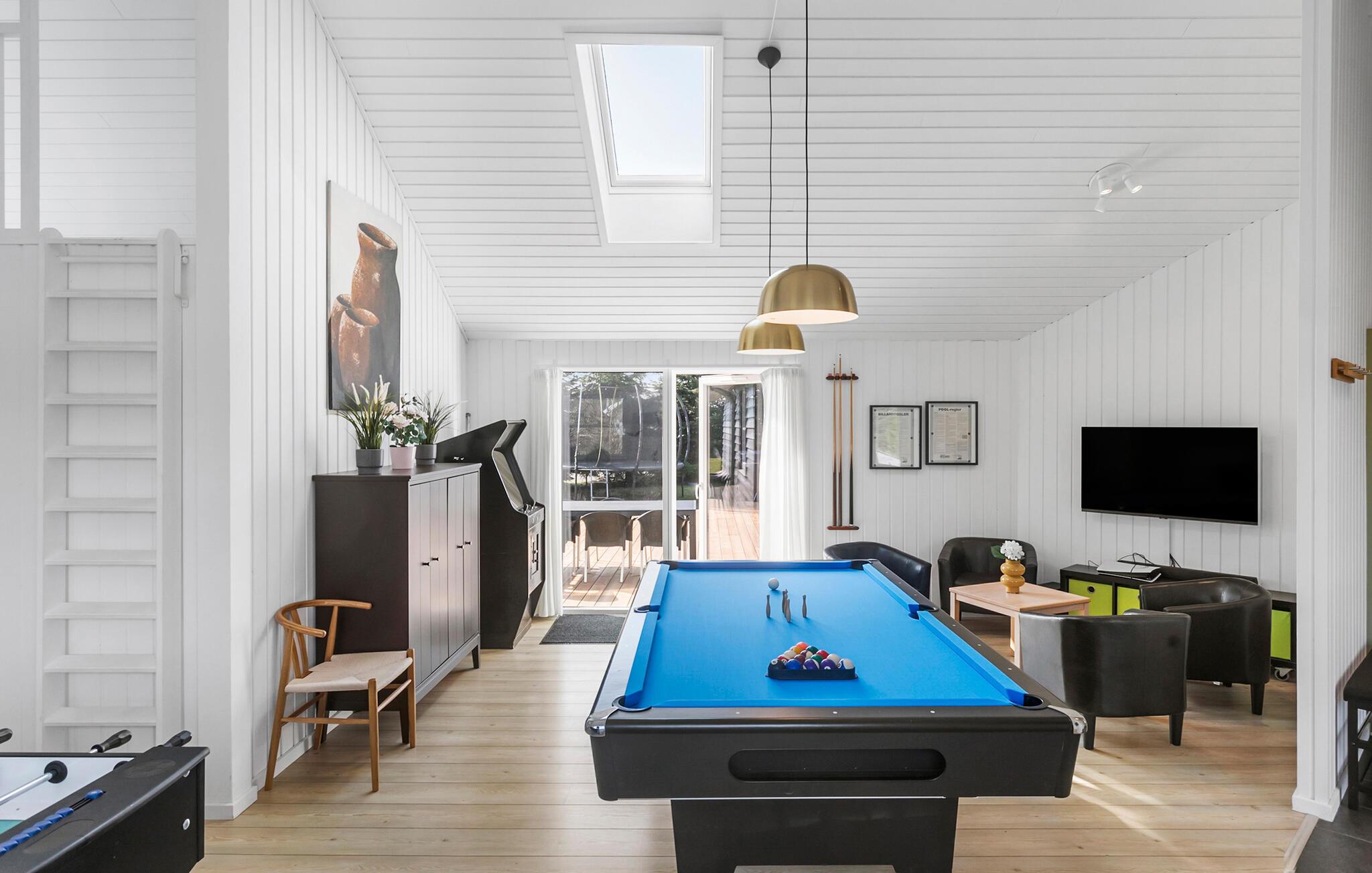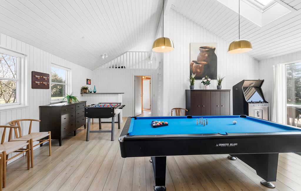 I Marielyst er der rig mulighed for oplevelser uanset alder, og vælger I dette fantastiske feriehus, bliver mulighederne ikke færre. Her er tænkt på alt, for at I, familien eller vennerne, kan nyde en dejlig ferie i et hus, med mulighed for afslapning eller aktivivteter - alt efter temperament. Nyd en svømmetur i den lækre pool, slap af i spabadet eller tag et spil billard eller bordfodbold med vennerne i det store aktivitetsrum. Den flotte og velindrettede opholdstue er kombineret med det fuldt udstyrede køkken samt spisepladsen. Brændeovnen skaber en ekstra hyggelig stemning på kølige dage. I huset findes 7 soverum med gode senge samt 2 hemse med madrasser, desuden 3 badeværelser godt placeret rundt i huset. Udendørs findes flere terrasser, gode havemøbler og om sommeren en stor trampolin.