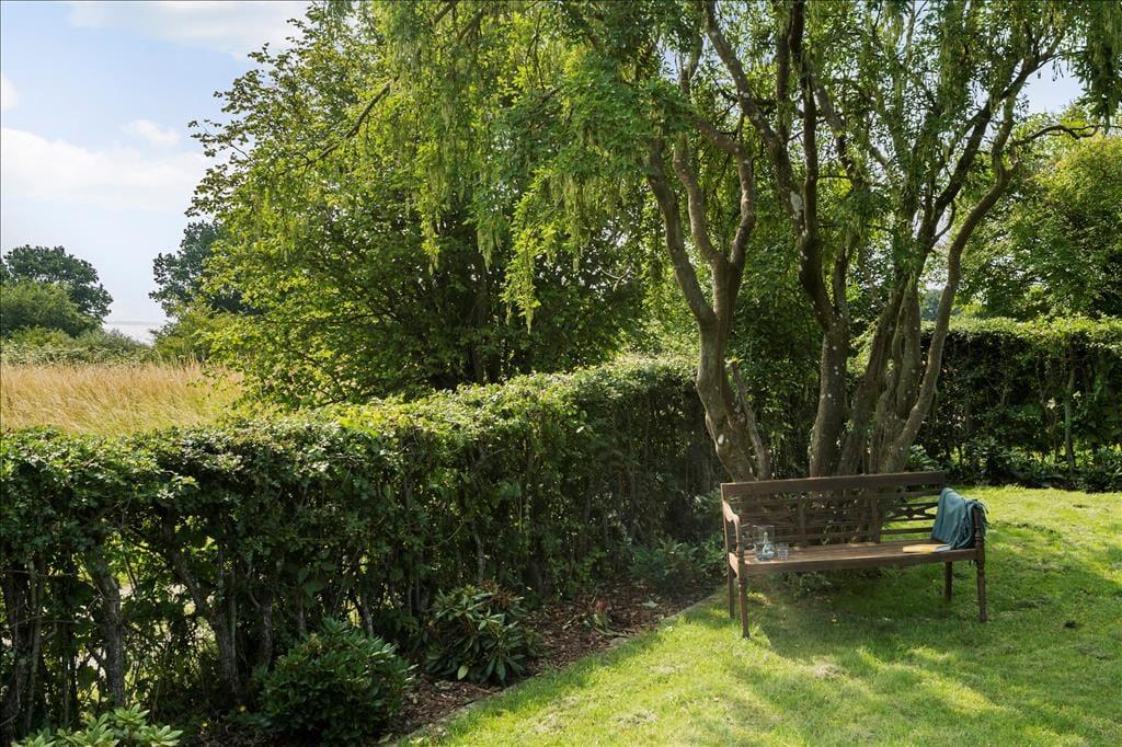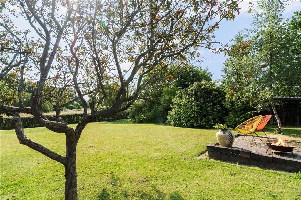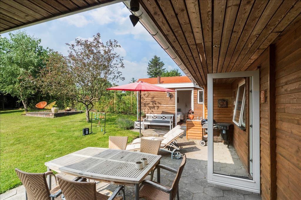 Livet i sommerhuset leves i høj grad under åben himmel. På den store terrasse kan du starte dagen med morgenkaffen, mens du nyder havkigget og den friske brise fra Aarhus Bugt. Når solen står højt på himlen, indbyder haven til afslapning i liggestolen, mens børnene leger i det fri.