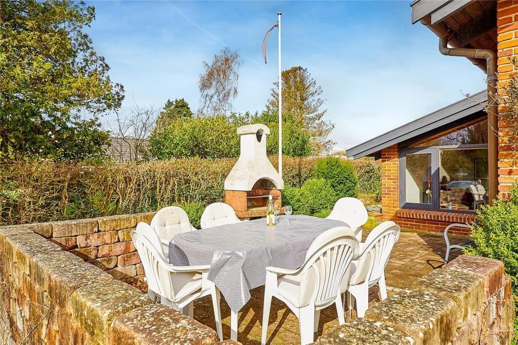 Udenfor venter terrassen som det naturlige samlingspunkt, hvor du kan nyde morgenkaffen i den friske havluft, spise frokost under åben himmel eller se solen forsvinde bag træerne, mens aftenen falder til ro. Haven omkring huset giver plads til afslapning og leg, og stranden ligger kun en kort gåtur væk, hvor du kan mærke sandet under fødderne og lade bølgernes rytme skabe ro. Her kan du finde dit eget tempo, uanset om du søger aktivitet, ro eller bare vil sidde og nyde lyset, lydene og stemningen ved havet.