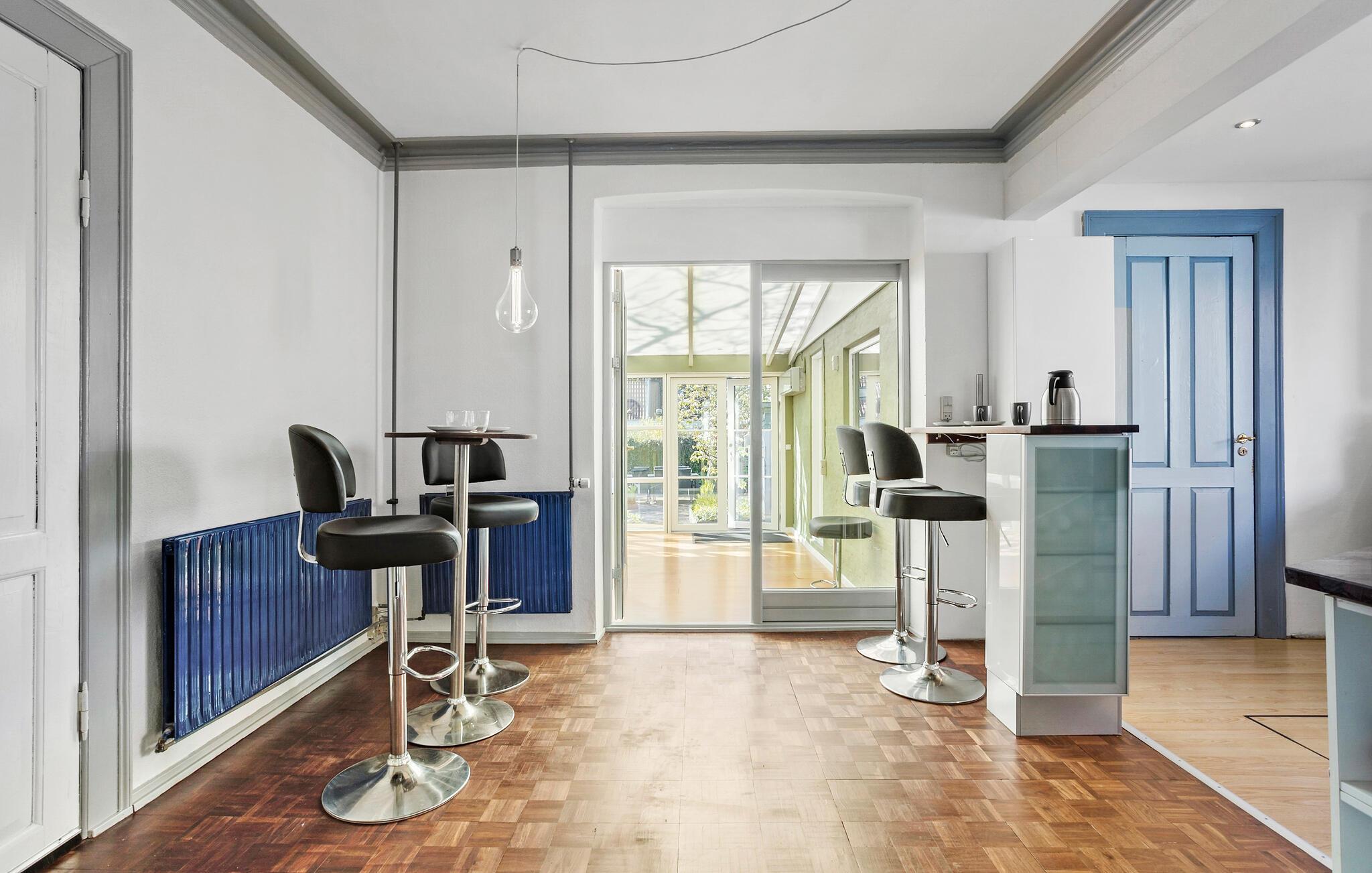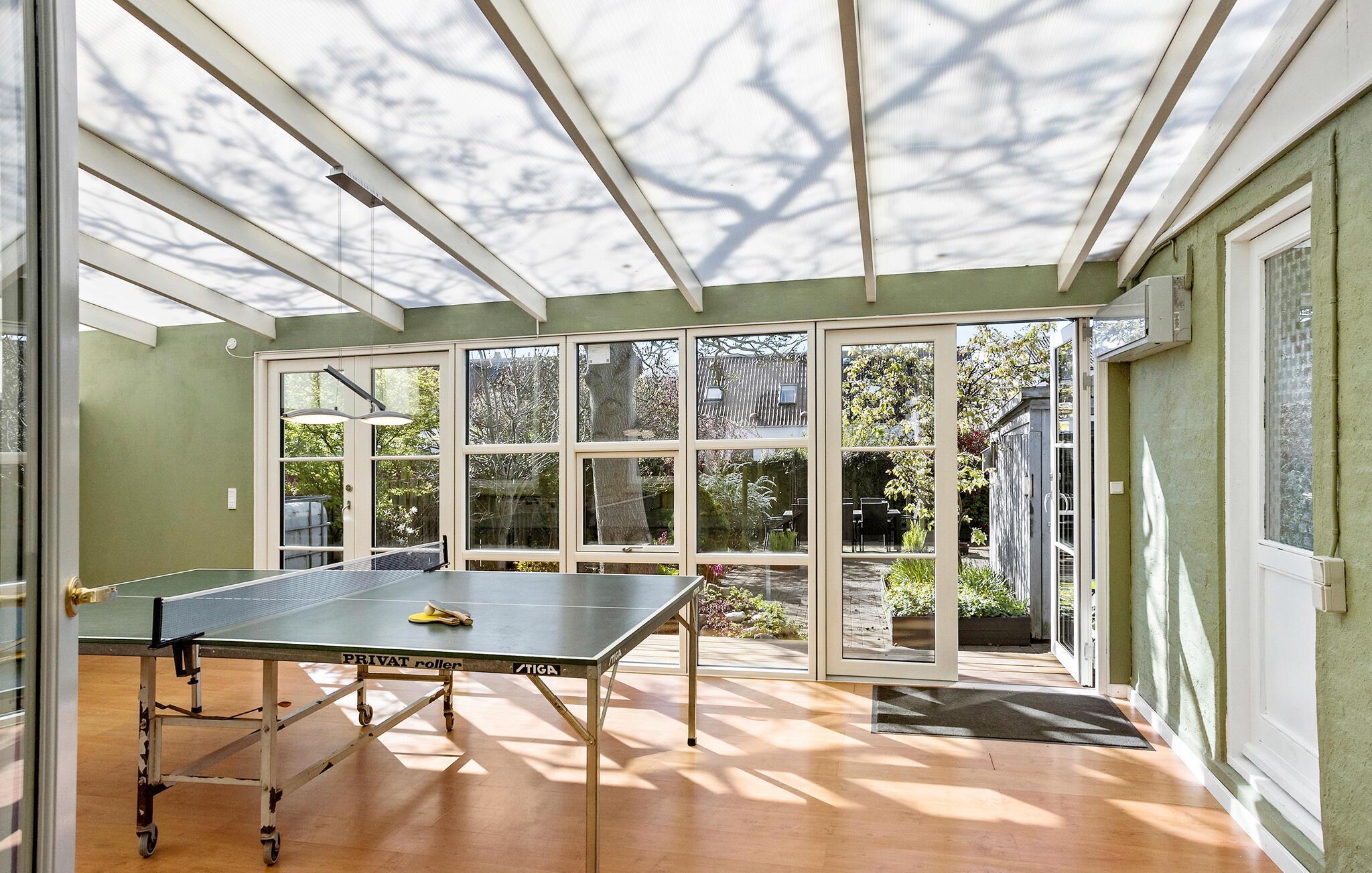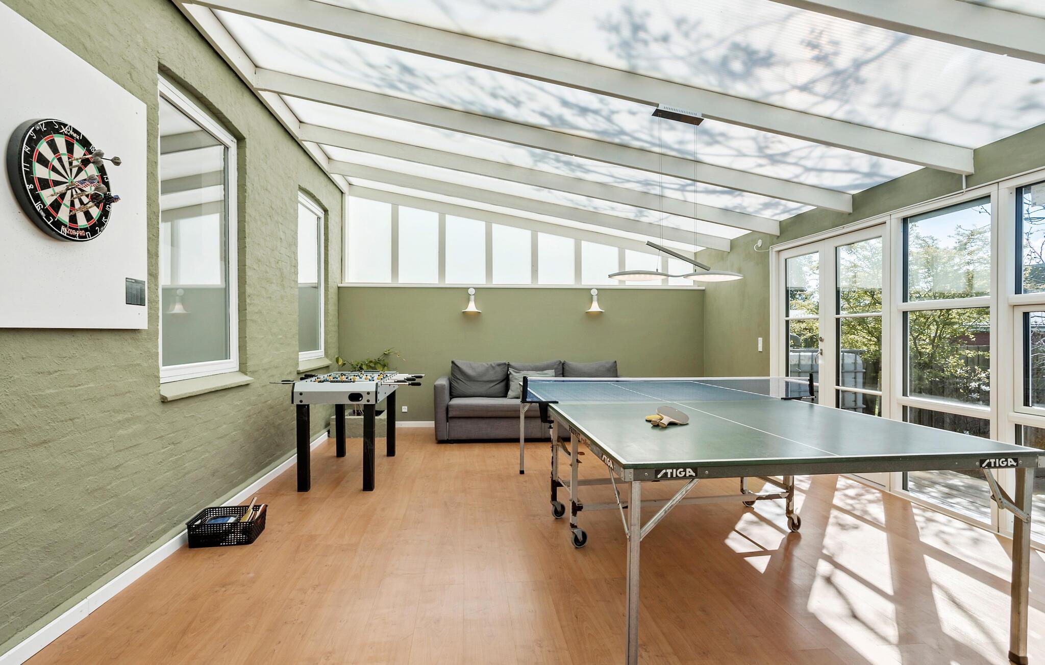 Udestuen, der ikke er opvarmet, fungerer som aktivitetsrum og byder på masser af sjov for alle aldre. Måske I skal have en turnering op at stå med bordtennis, bordfodbold og dart? Fra udestuen træder I ud i den smukt anlagte have med farverige blomster, buske og træer, hvor I kan nyde roen her midt i byen.