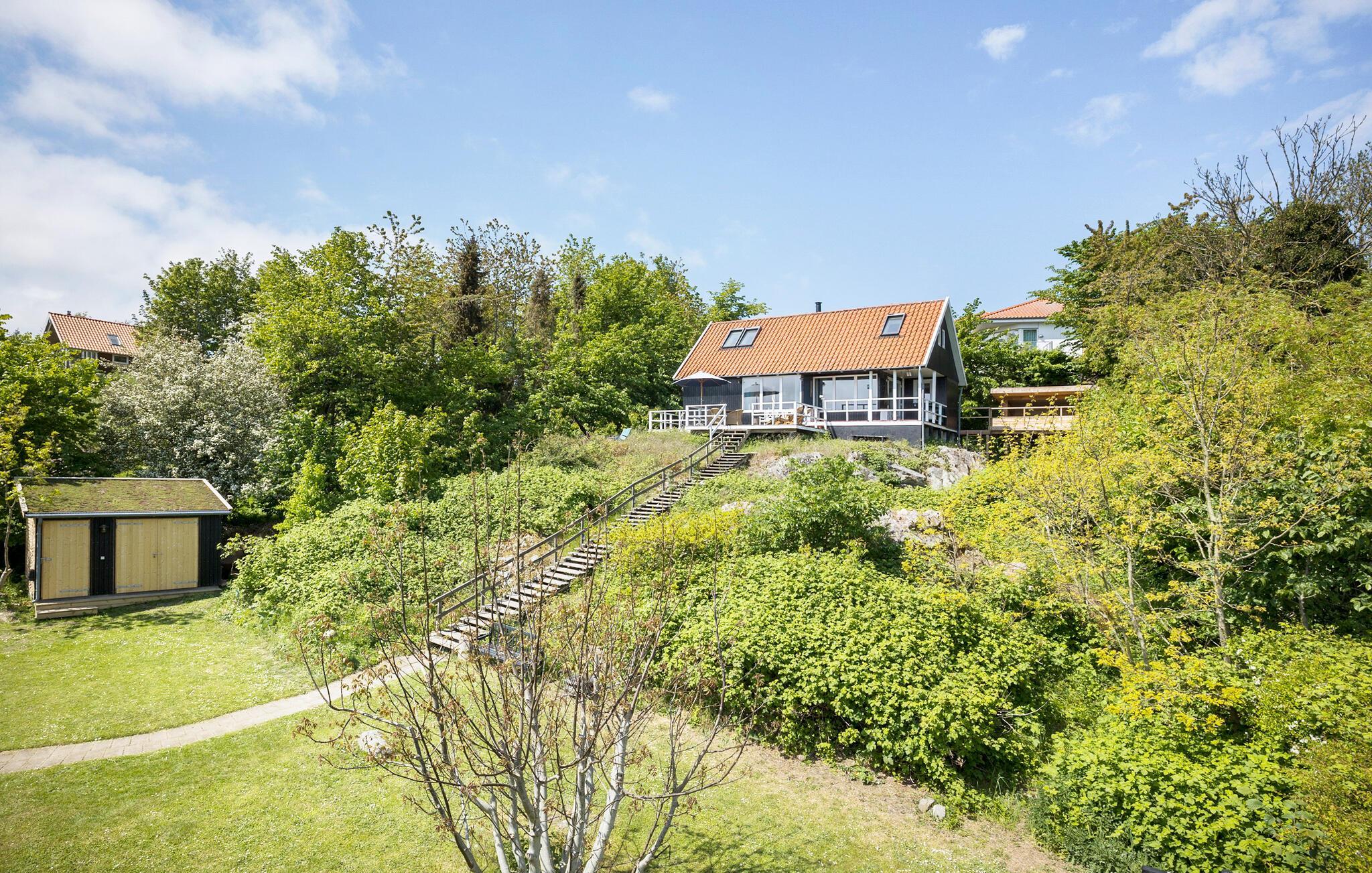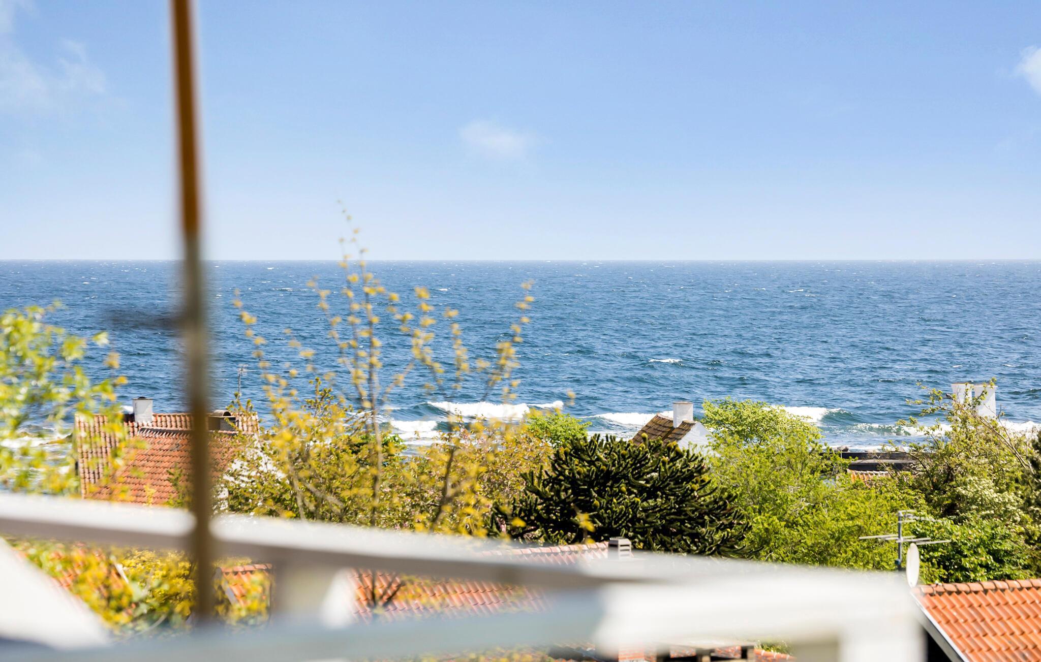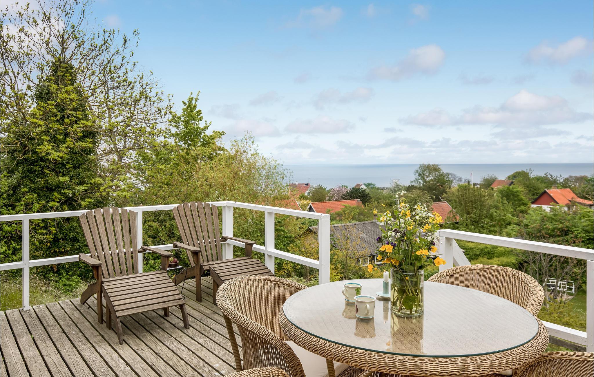 I kommer op til dette dejlige hus via en trappe, og fra huset er der ikke langt til den flotte klippekyst, en god sandstrand og det maleriske Gudhjem. Spis en lækker frokost på røgeriet, besøg det traditionsrige glasværksted eller nyd en stor vaffelis på havnen. I kan også gå en tur op ad de stejle gader og se de smukke, gamle huse. Inden I forlader byen, skal I ikke snyde jer selv for en højtbelagt skive 'Sol over Gudhjem'. Under jeres ophold har I heller ikke langt til Allinge, Svaneke og Hammershus, ligesom I kan tage på en udflugt til Christiansø.