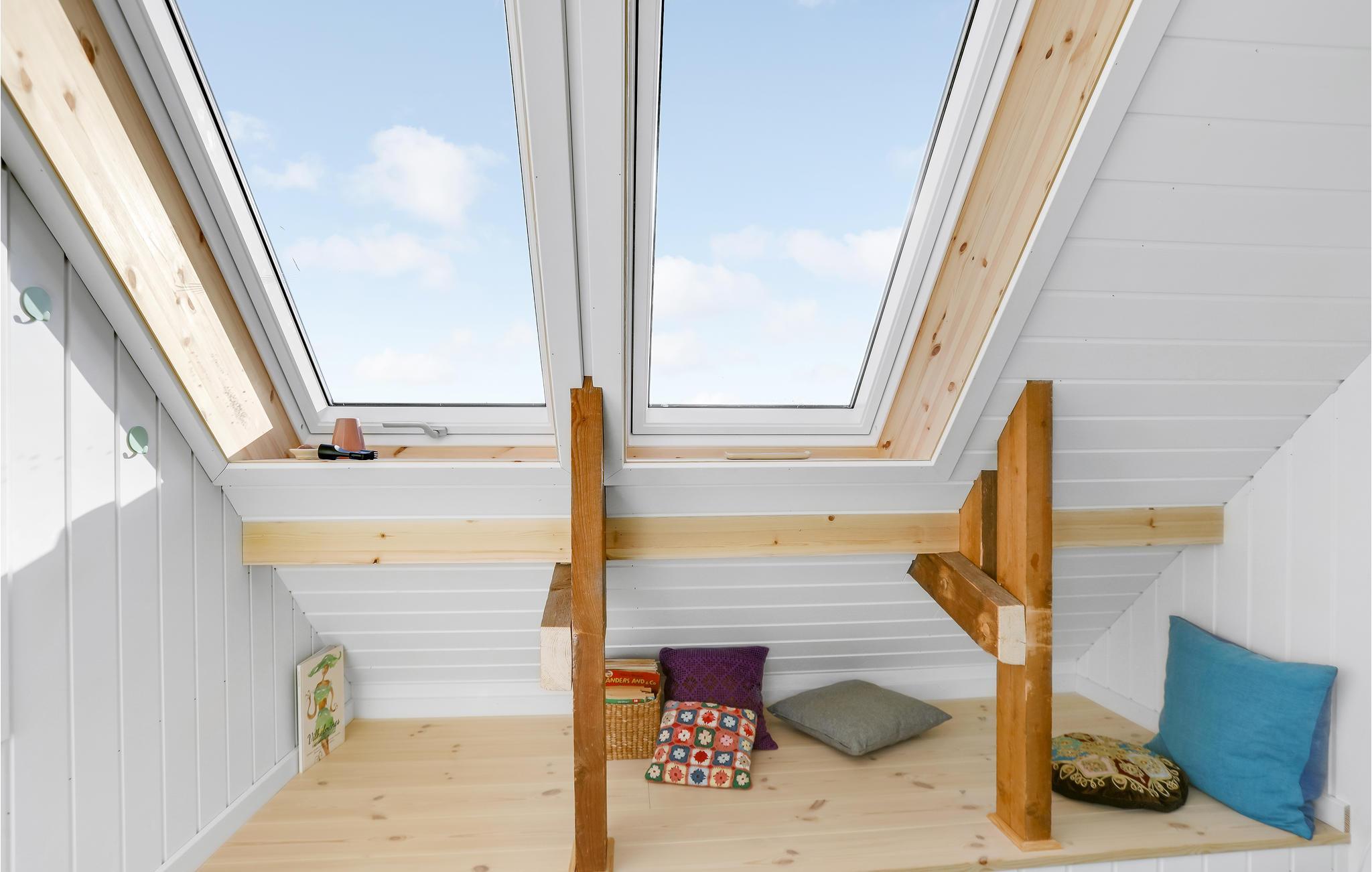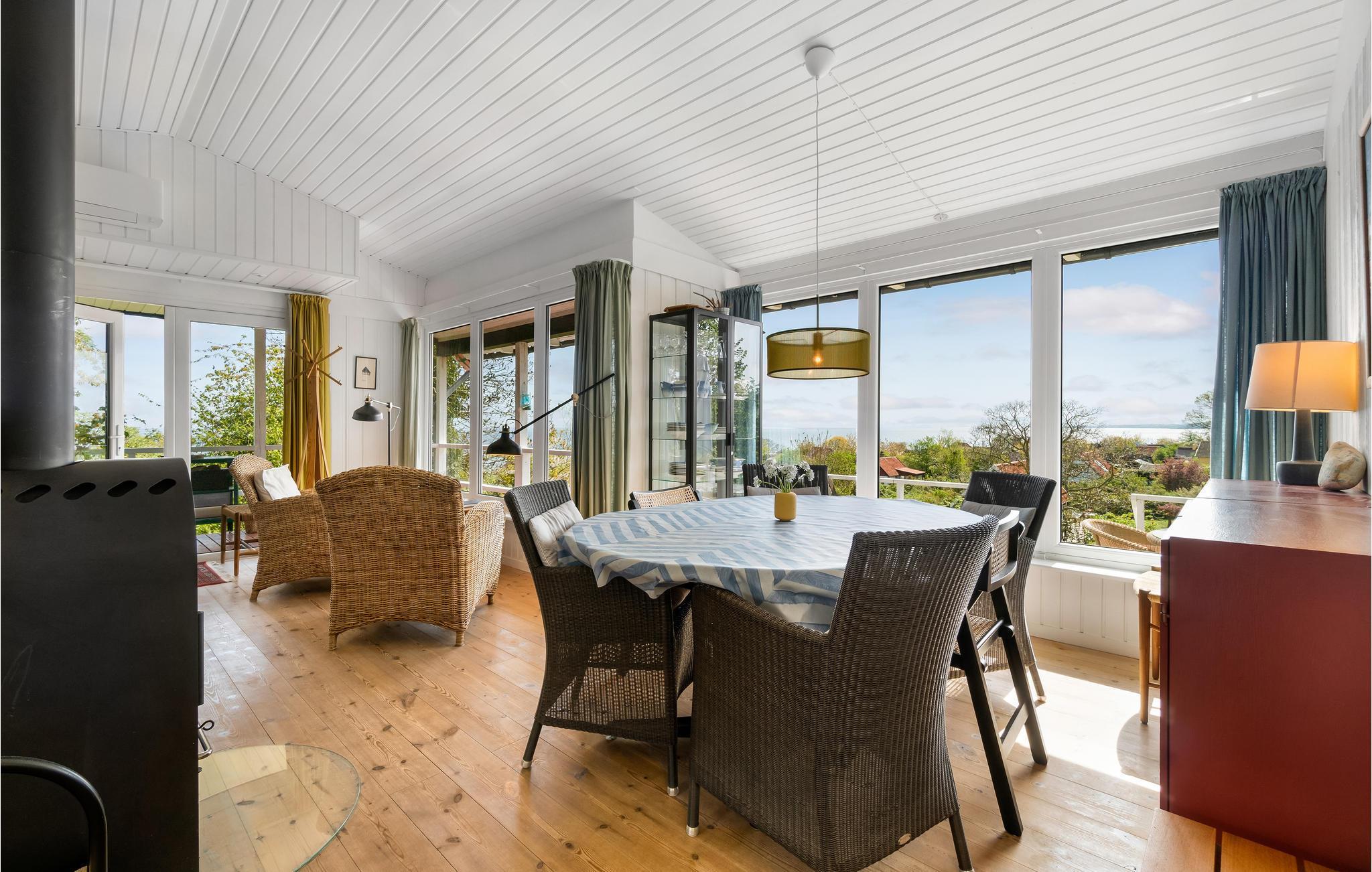 Tag familien under armen og rejs til Bornholm, hvor I lidt syd for Gudhjem får base højt oppe i dette indbydende hus med udsigt over havet. Huset er lyst og moderne indrettet i et åbent miljø og med gode møbler og et pragtfuldt badeværelse med gulvvarme, der sikrer god komfort og gør det nemt at lade skuldrene falde med det samme, I ankommer. Prikken over i'et er dog udsigten, der kan nydes gennem de mange, store vinduespartier, der samtidig giver dejlige lysindfald til stuen. Hvs vejret viser lidt tænder, kan I tænde op i brændeovnen og nyde dens knitrende lydtapet til aftenhyggen ved spisebordet eller i sofaen.