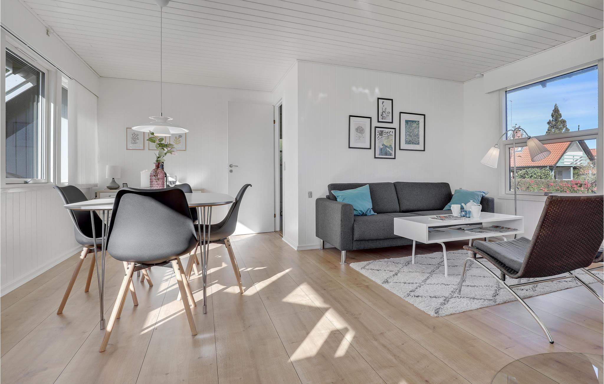 Hold jeres velfortjente ferie i dette flotte og velholdte sommerhus af træ, der er lyst og moderne indrettet. Det ligger i attraktive omgivelser i Melsted, ikke langt fra den smukke klippekyst og en lille småbådehavn, hvor det er hyggeligt at holde øje med når fritidsfiskerne lægger til. Nyde udelivet i husets dejlige have og på den skønne store terrasse med bekvemme havemøbler. Lad jer betage af den flotte havudsigt fra stuen.