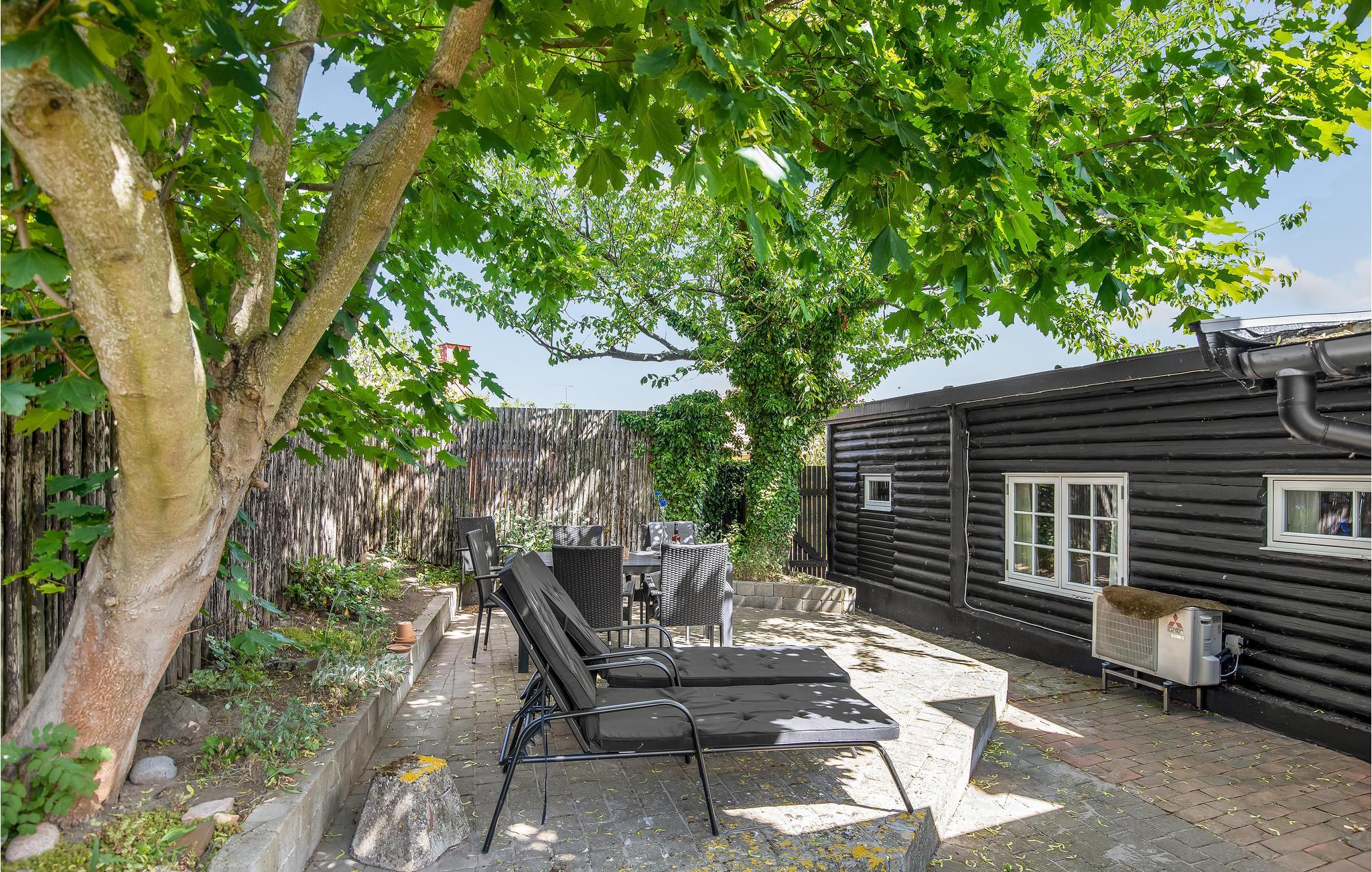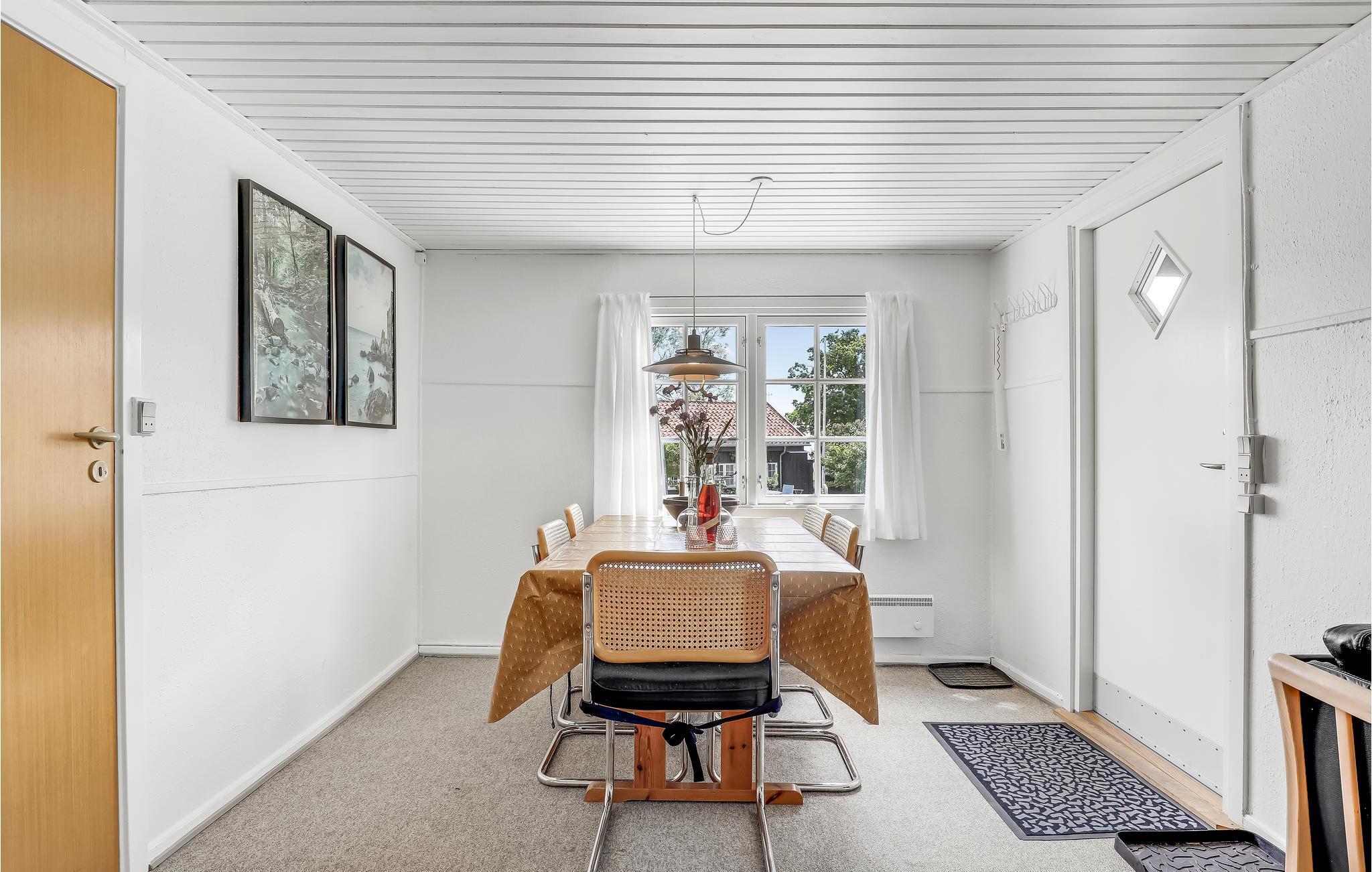 Huset indeholder en hyggelig kombineret opholds- og spisestue med komfortable møbler, her er gratis internet og varmepumpe samt ikke mindst kig til havet fra grund og spisestue. Fra køkkenet har I adgang til en pragtfuld gårdhave med pæne havemøbler, og her kan mange gode feriestunder nydes med solbadning og afslapning.