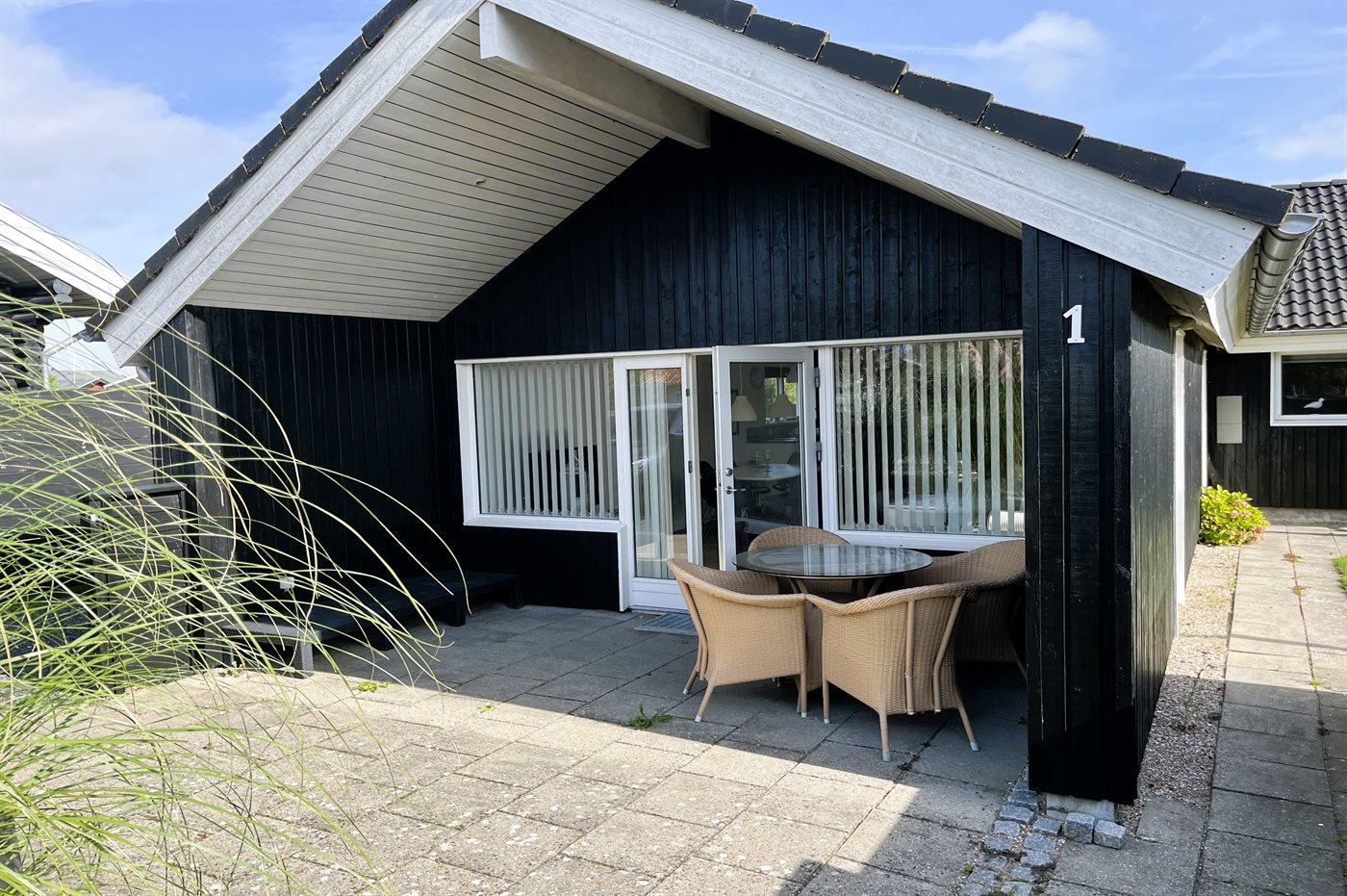 Ferieboligen er beliggende på en 350 m² stor havegrund. Grunden er indhegnet. Der er 150 m til havet. Nærmeste forretning er beliggende i en afstand af 2100 m. Der er en golfbane i en afstand af 5800 m. Til ferieboligen hører åbent terrasseareal. Desuden er der overdækket terrasse. Der er redskabsrum. Grill til rådighed. Der er installeret stik til opladning af elbil. Type 2 stik. Med 11 kW ladeeffekt. Parkering ved ferieboligen.
