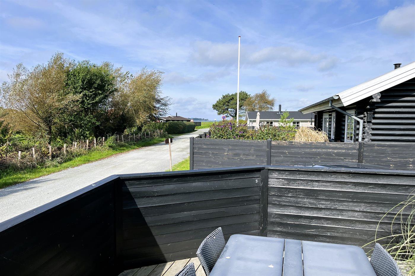 Omkring huset er der flere terrasser, hvoraf to er overdækket. Så her er både mulighed for morgen- og aftensol. Fra den hævede terrasse mod sydvest er der kig til vandet, og fra terrassen bag huset er der udsigt ud over engområdet. Terrasseområdet og en god del af haven er indhegnet.