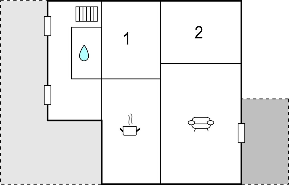 Soveværelse (nr. 2) - 1 Soveplads. (Enkeltseng(e)). 2 Sovepladser. (Sofa, madras eller lignende).