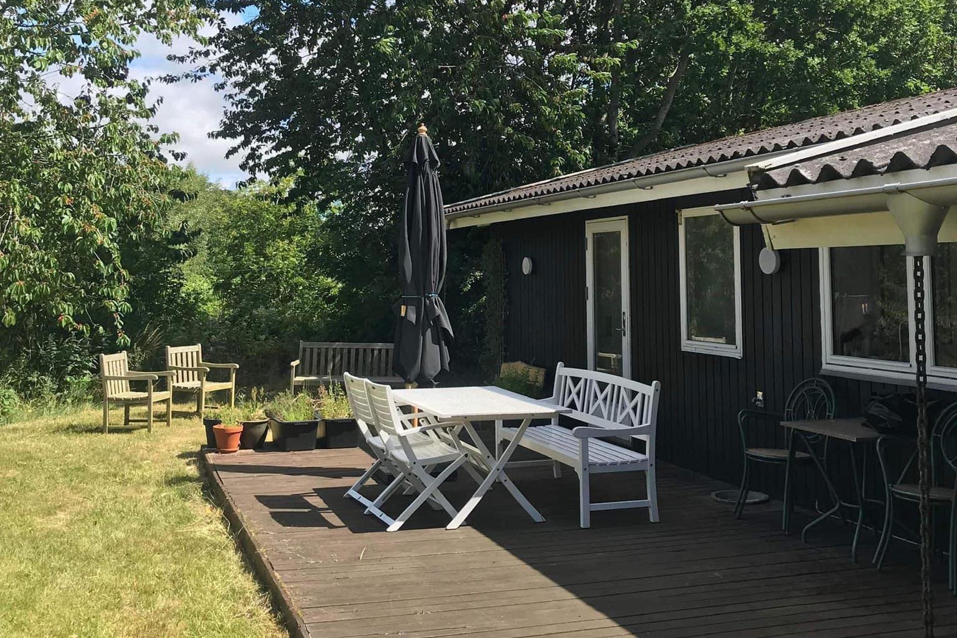 Hyggeligt hus på Mols med terrasse, brændeovn og smuk udsigt over Knebel Vig.