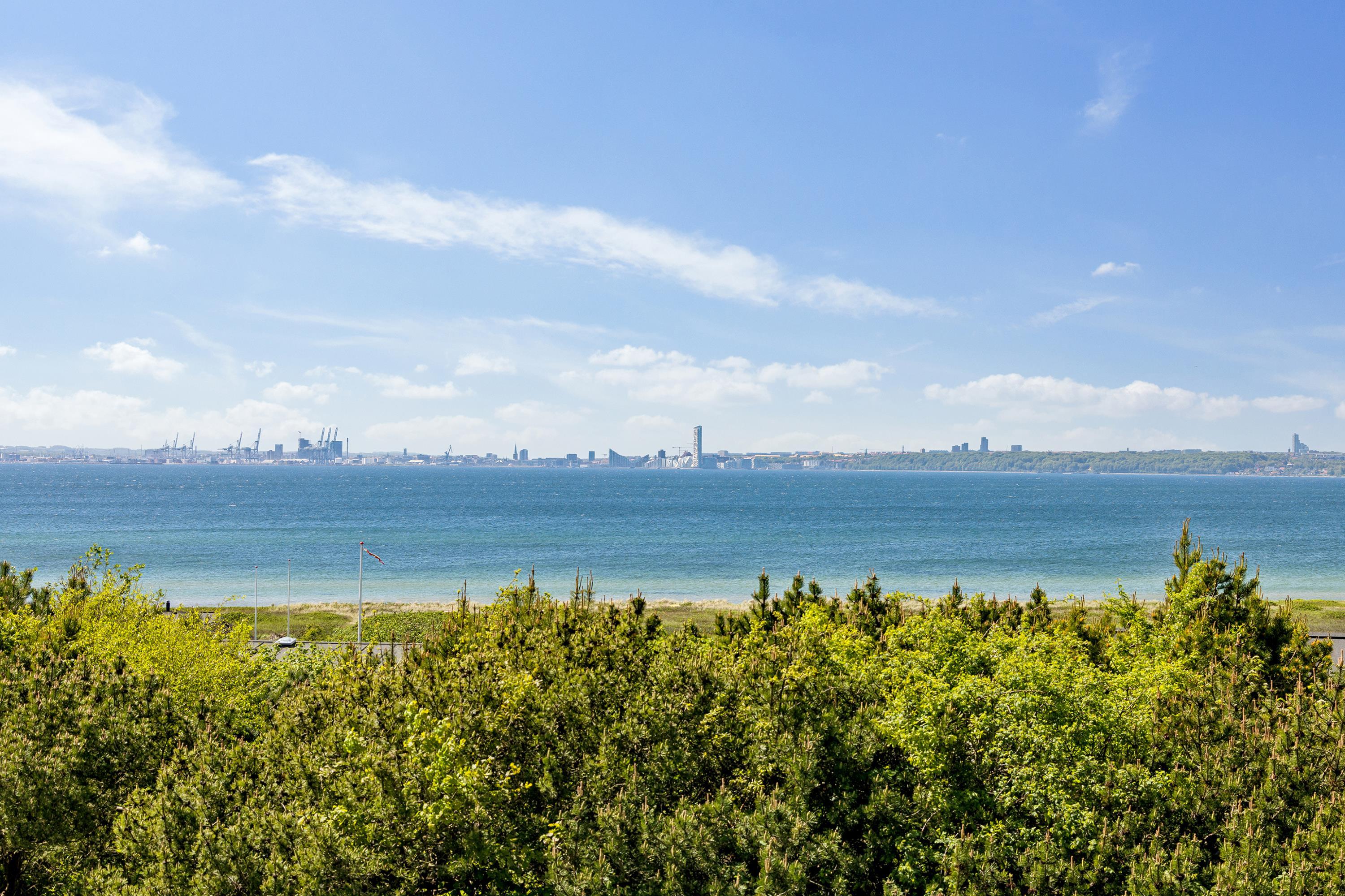 Med den smukkeste beliggenhed og panoramaudsigt til Århusbugten, finder man dette mindre og særdeles hyggelige hus med tilbygninger. I hovedhuset finder man en rigtig hyggelig stue, hvorfra man har en fantastisk udsigt over vandet og med udgang til terrassen med havemøbler. Der er også her man finder det lille men funktionelle køkken. I tilbygningen finder man husets to soveværelser, samt et nyere badeværelse og et gæstetoilet. Der er internet i huset.