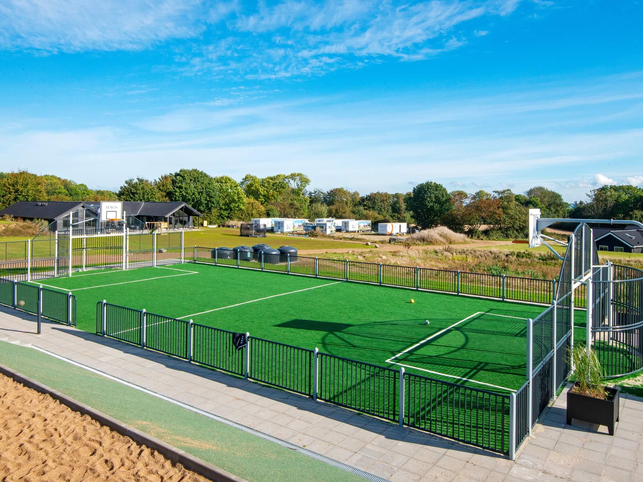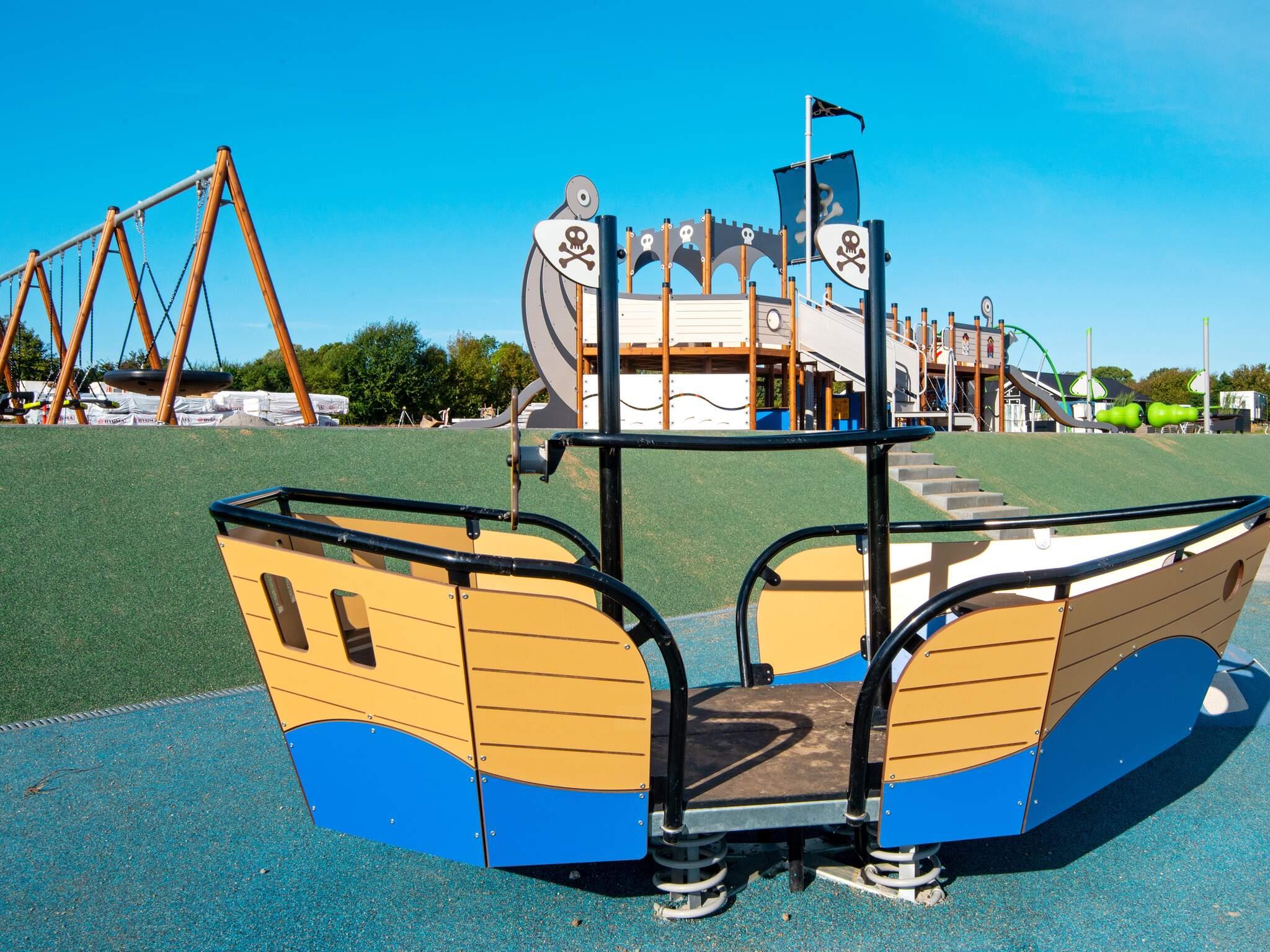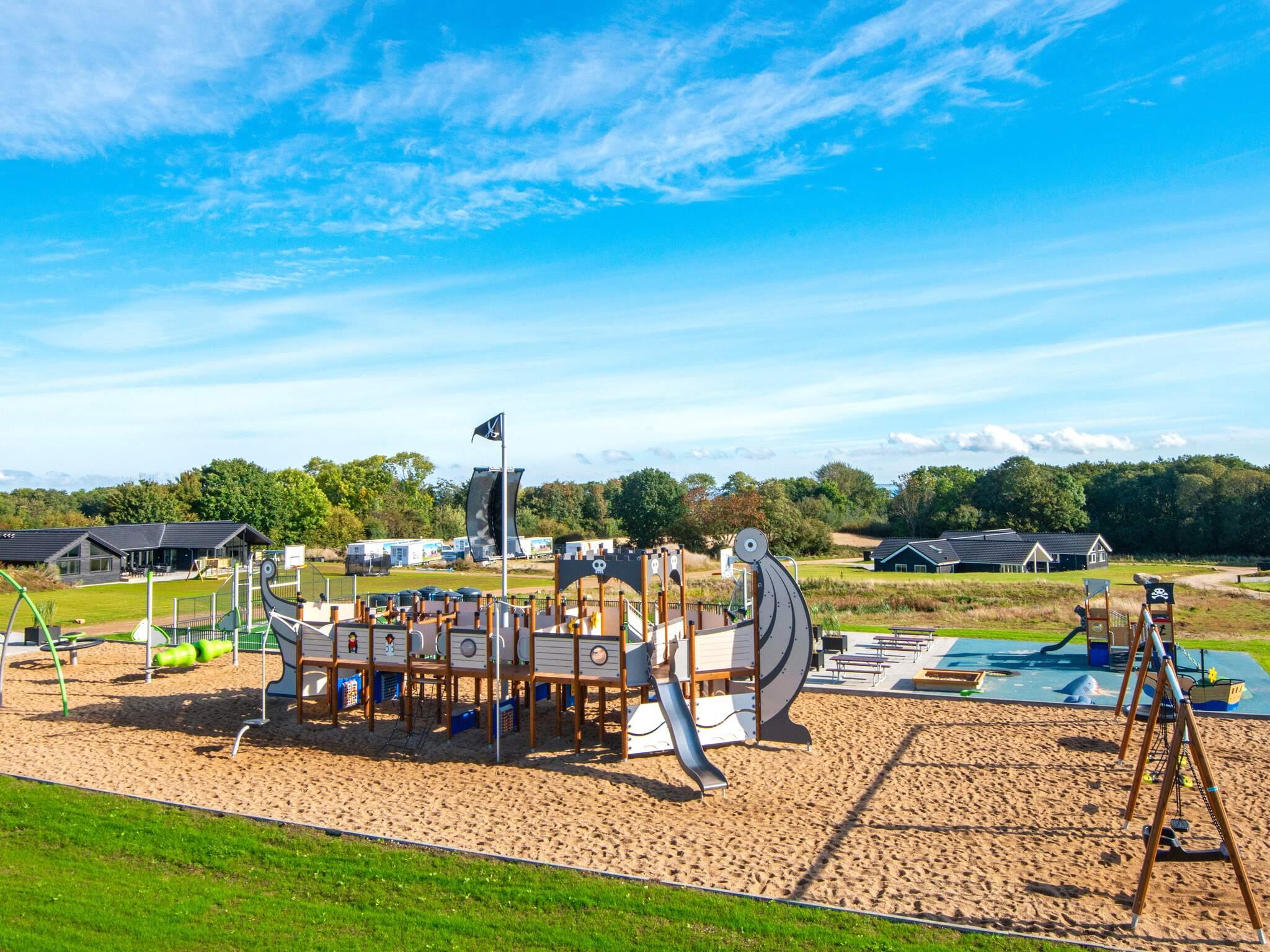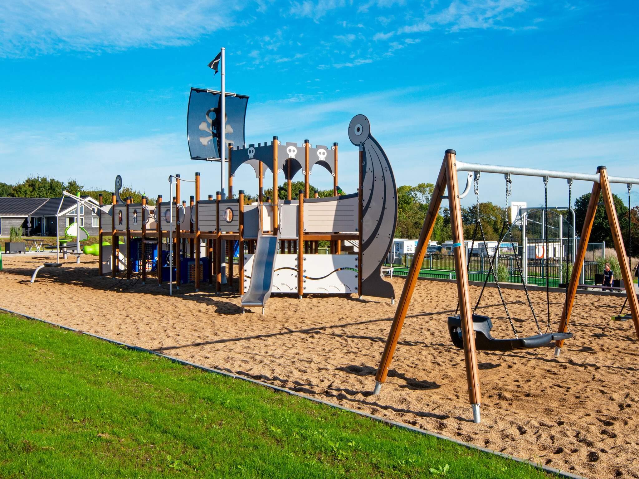 Alle luksussommerhuse i Mommark har adgang til et stort, fælles udendørs legeområde og multibane. Her kan børn og sjæleunge tilbringe deres feriedage med at lege på det store piratskib, gynge, glide og klatre på klatrestativet. Den græsdækkede multibane kan bruges til fodbold, basketball, fodtennis, volleyball og badminton. Ved siden af ??legepladsen finder du også borde og bænke, hvor voksne og andre tilskuere kan hygge sig og slappe af.