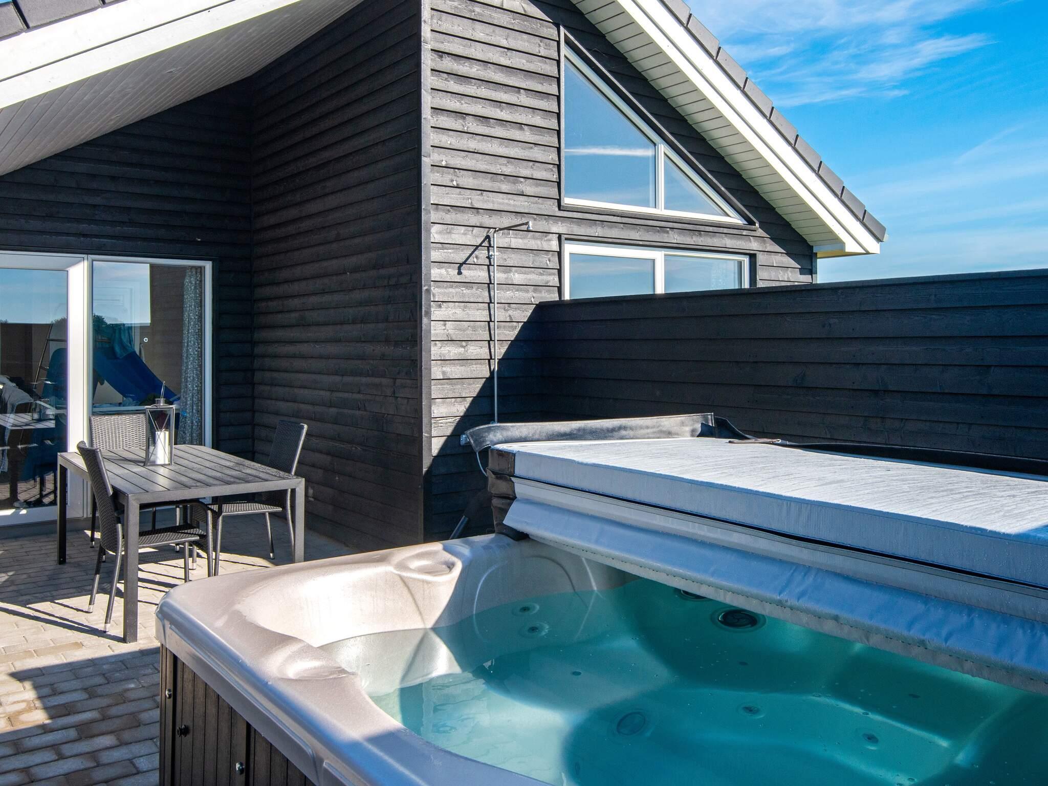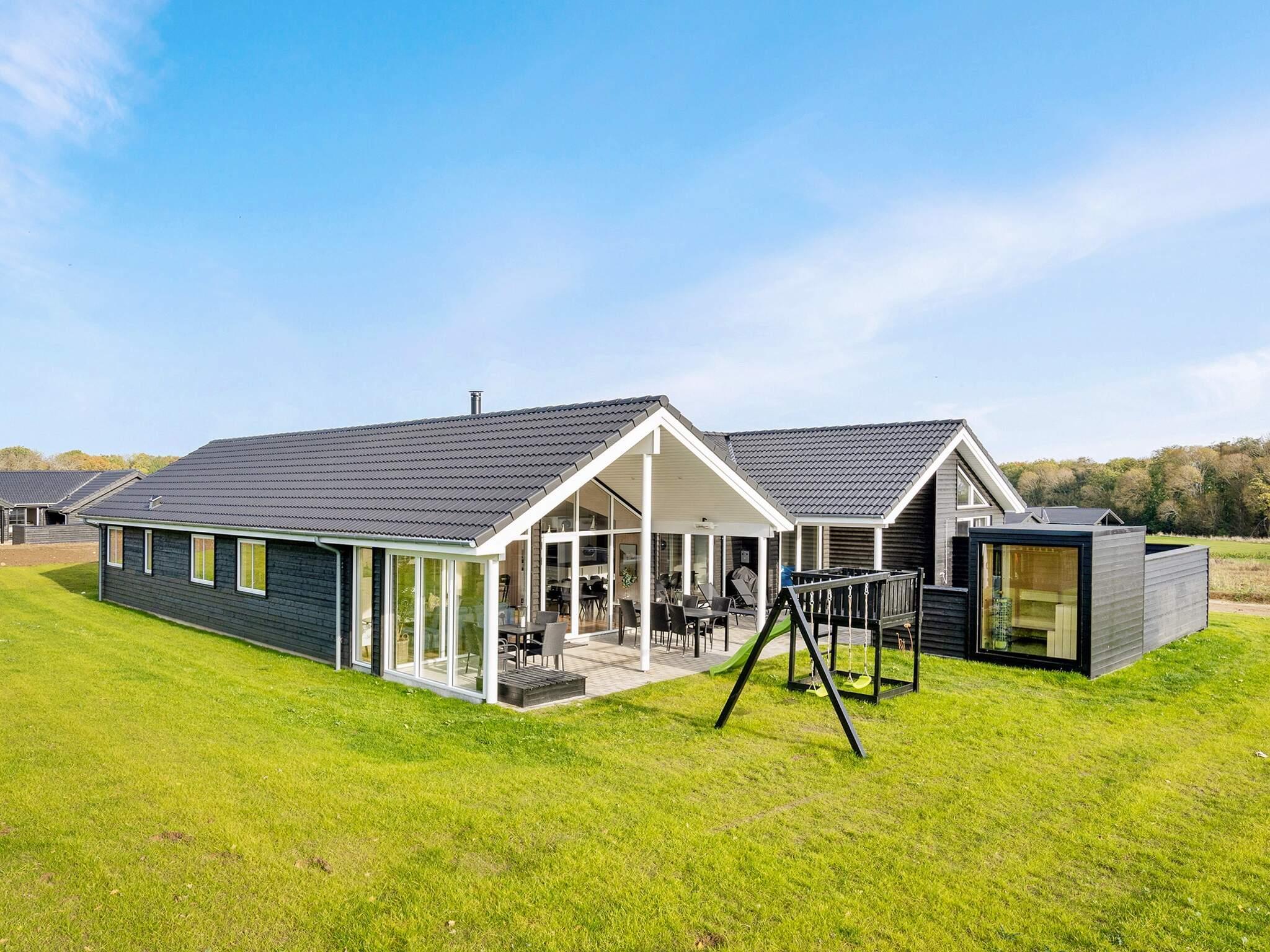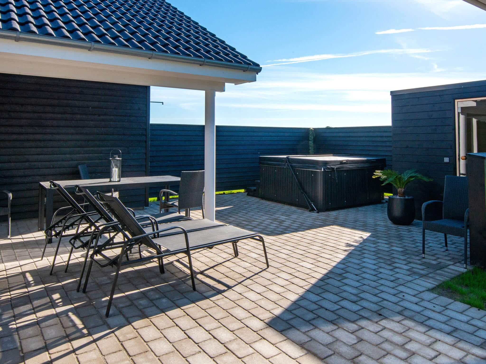 Udenfor er der udover wellness-faciliteterne også god plads til afslapning og leg. Den delvist overdækkede terrasse har havemøbler, grill og elektriske terrassevarmere til kølige aftener. Børn kan lege i haven, hvor der er en gynge, sandkasse og trampolin.