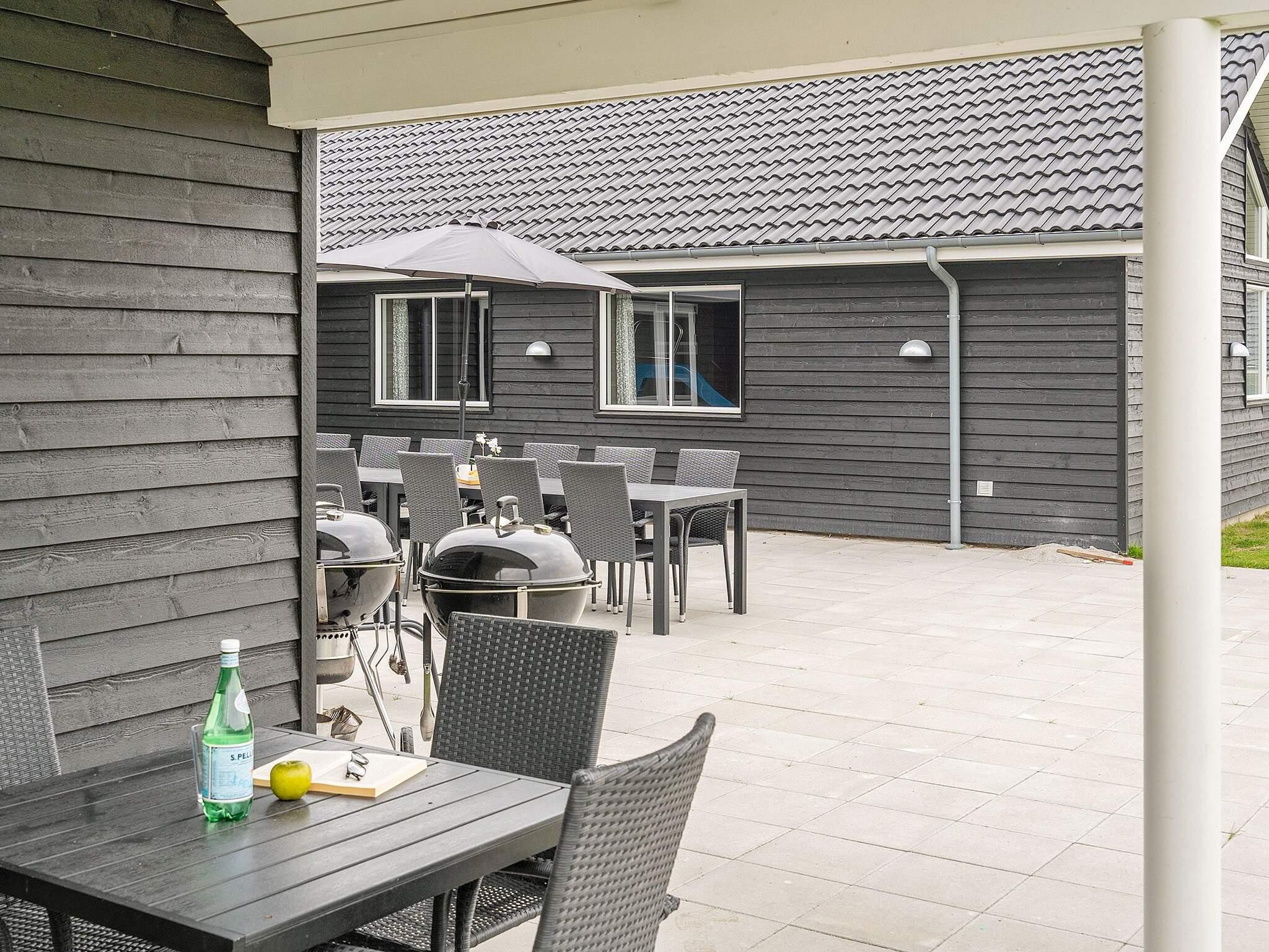 Tæt på den skønne strand i Mommark finder du dette sommerhus med swimmingpool, spabad, sauna, aktivitetsrum og plads til 20 personer.