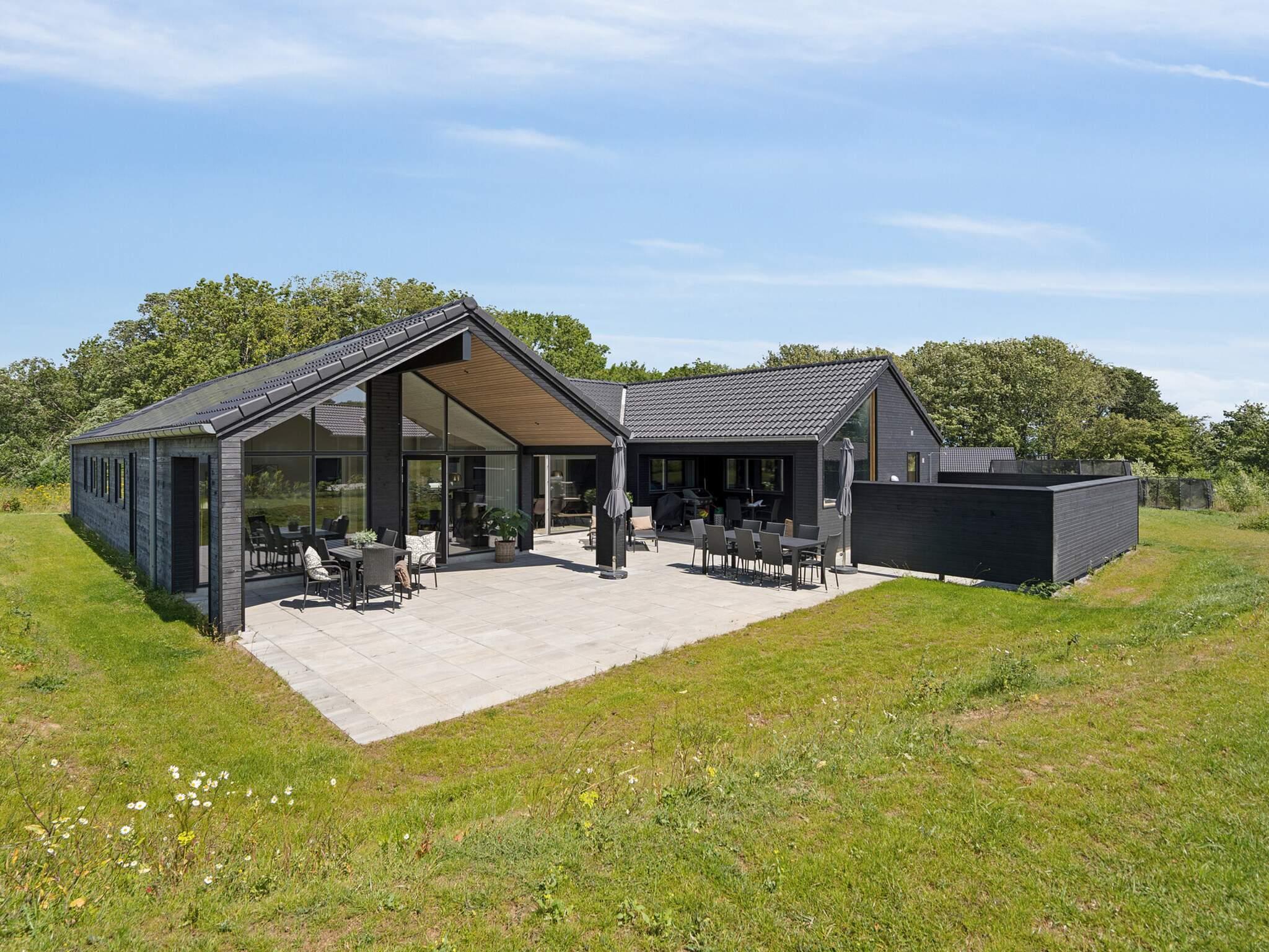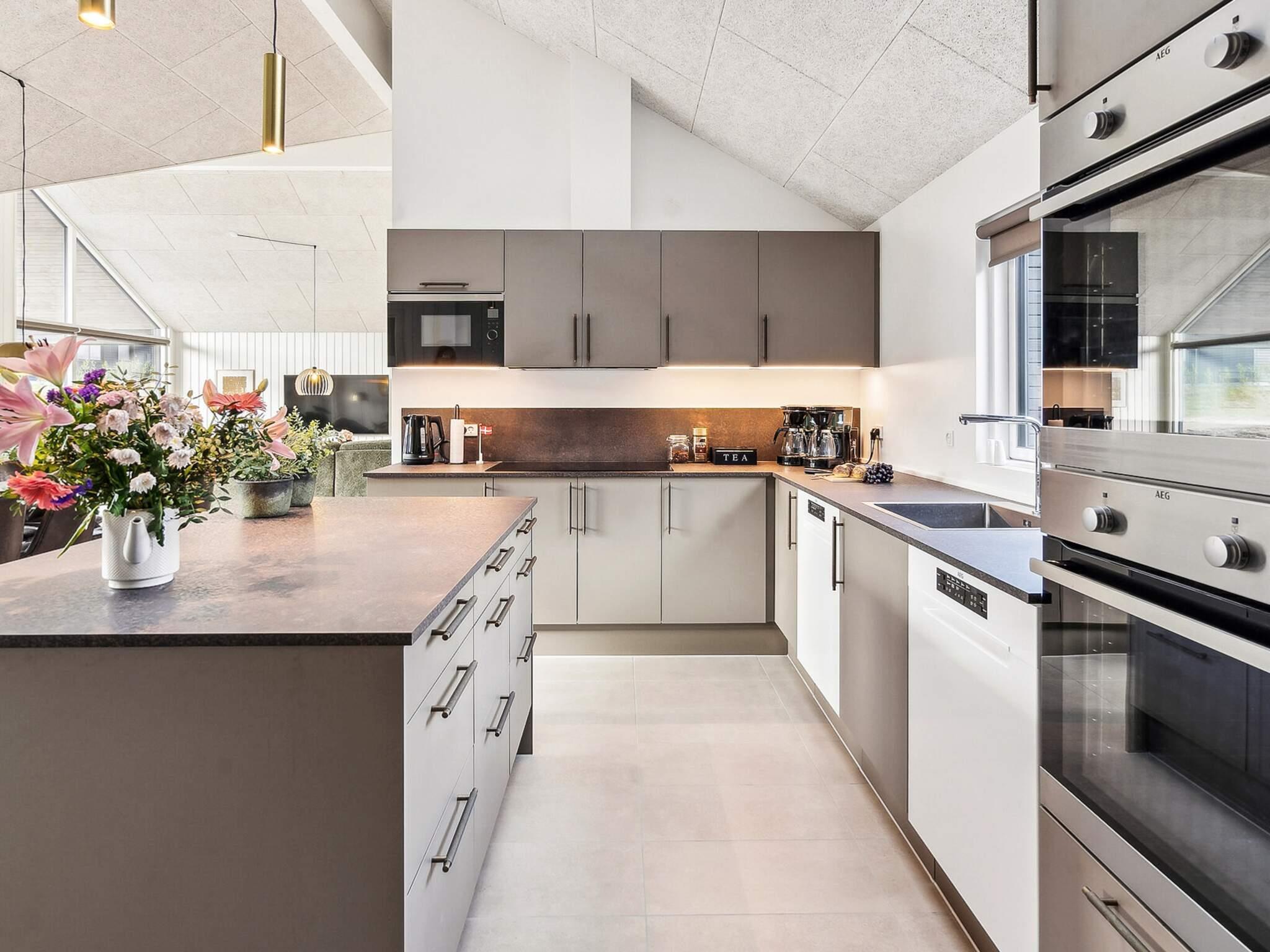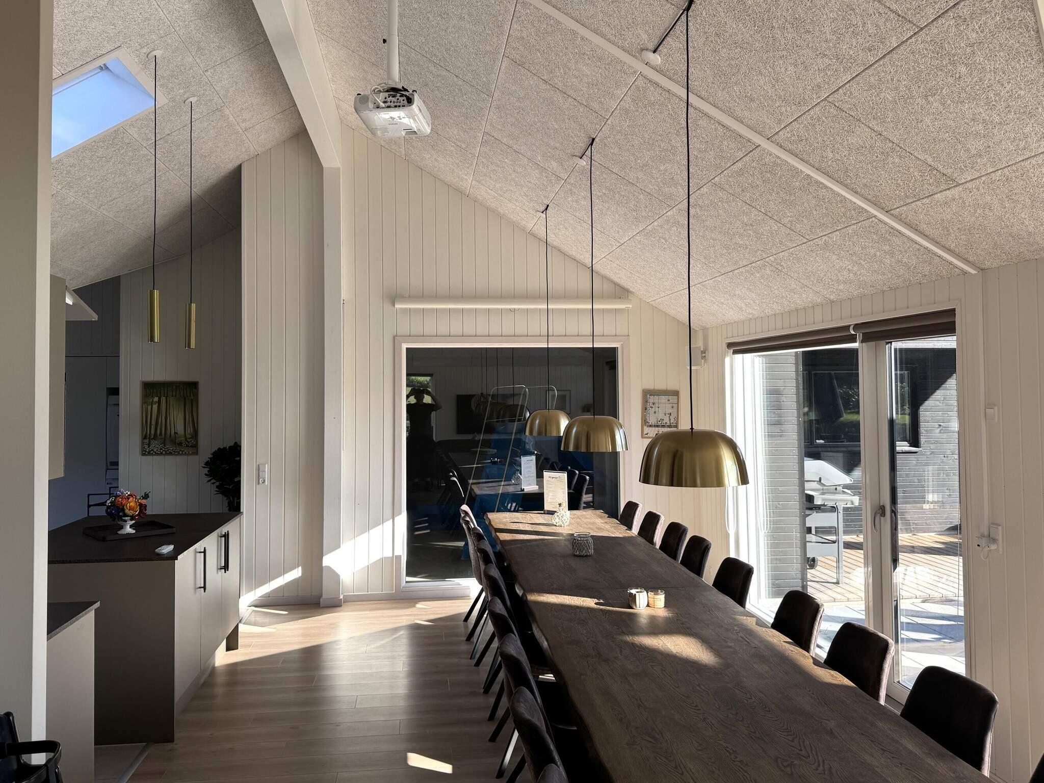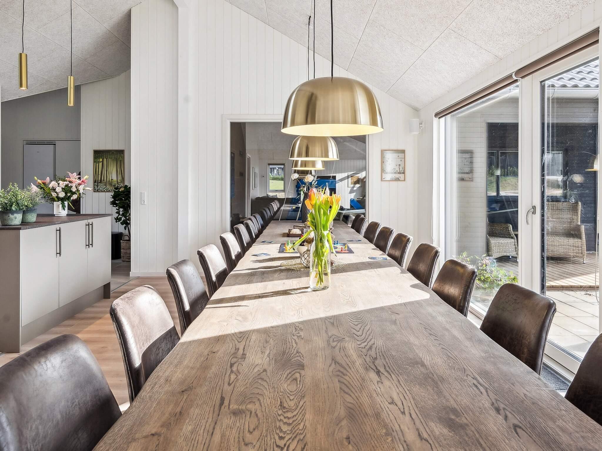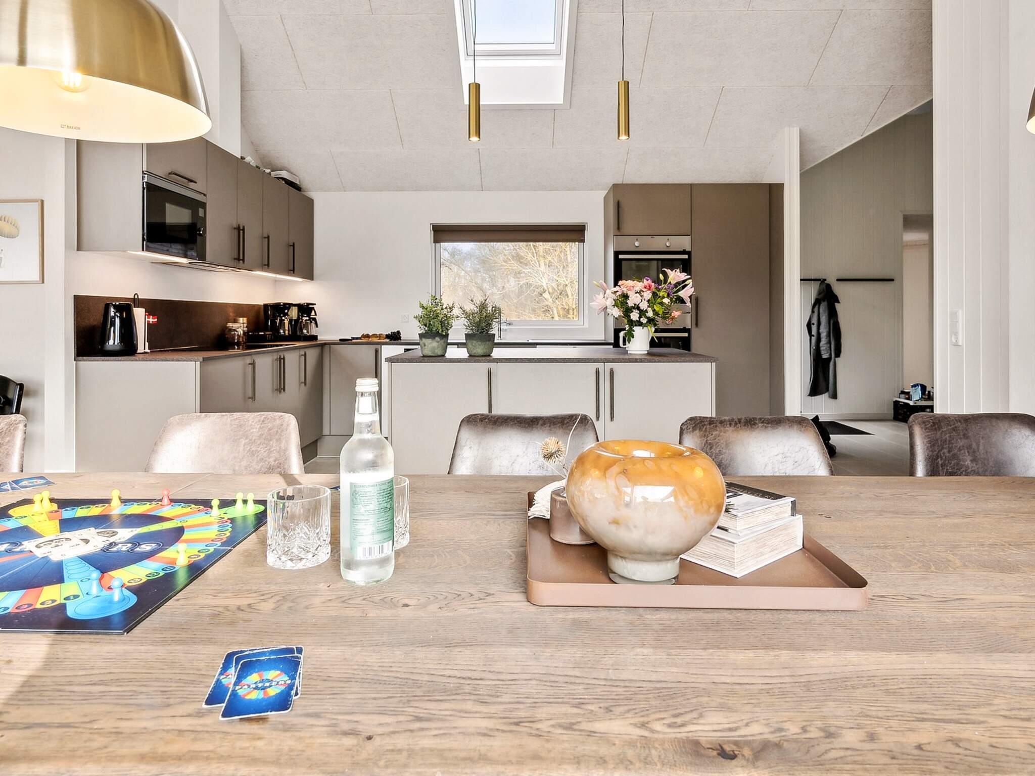 Feriehuset har syv soveværelser, tre badeværelser og en hyggelig hems, som især børn vil elske. Der er taget ekstra hensyn til indretningen af ??det store køkken-alrum, der fungerer som omdrejningspunktet for huset med et fuldt udstyret XL-køkken med 2 ovne og 2 opvaskemaskiner, et langt flot mahogni spisebord med plads til alle, samt en behagelig sofagruppe med brændeovn. Her er rig mulighed for hyggeligt samvær og gode måltider.