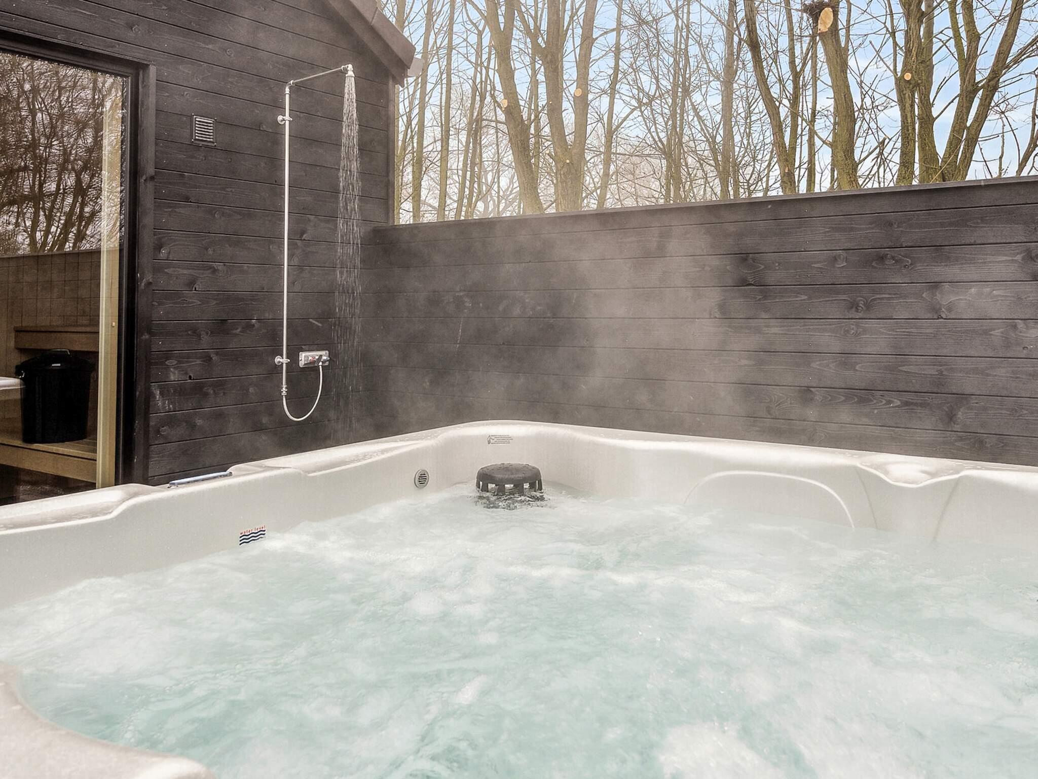 Udearealet byder på en stor terrasse med både spa og sauna, hvor du kan slappe af under åben himmel. Når aftenen falder på, holder terrassevarmeren dig varm, mens du laver din mad på enten kul- eller gasgrillen.