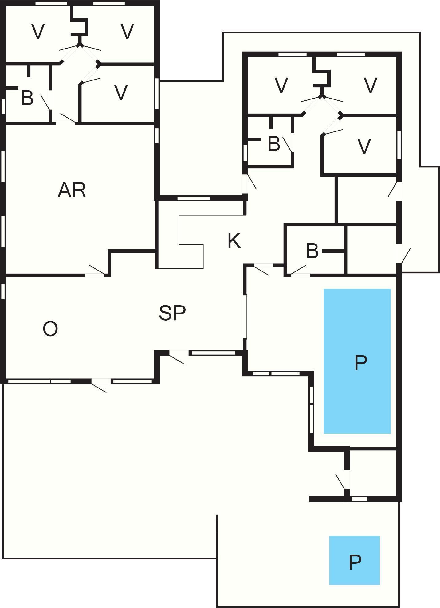 6 Soveværelser: (1DS)+(1DS)+(2S)+(2S)+(2S)+(2S)
