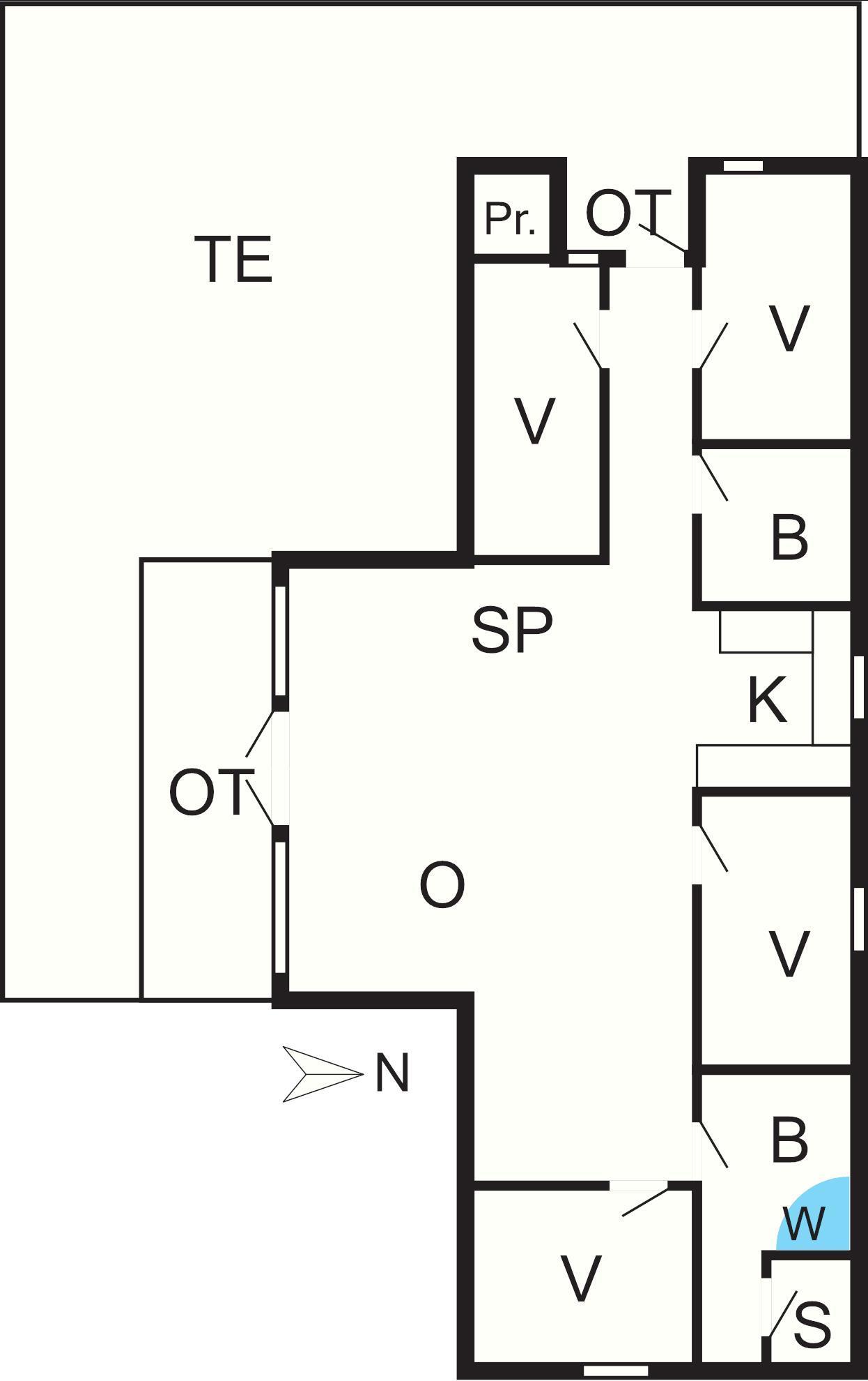 4 Soveværelser: (1DS)+(1DS)+(1S+2K)+(1S+2K), barneseng