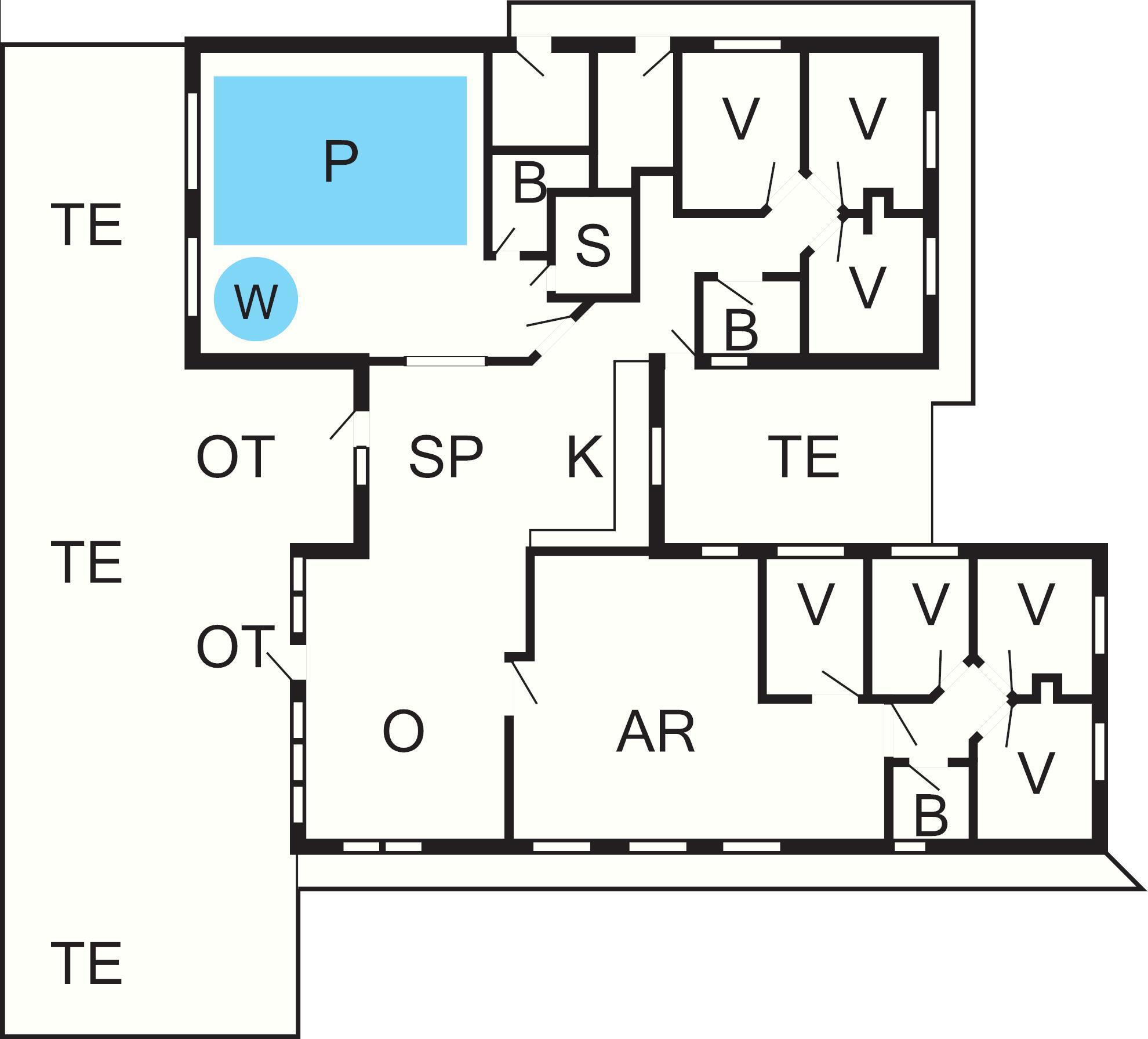 Beliggende i et dejligt sommerhusområde nær Mommark, hvor der er mange fælles aktiviteter, finder I dette sommerhus til 18 personer med swimmingpool, spabad, sauna og aktivitetsrum.