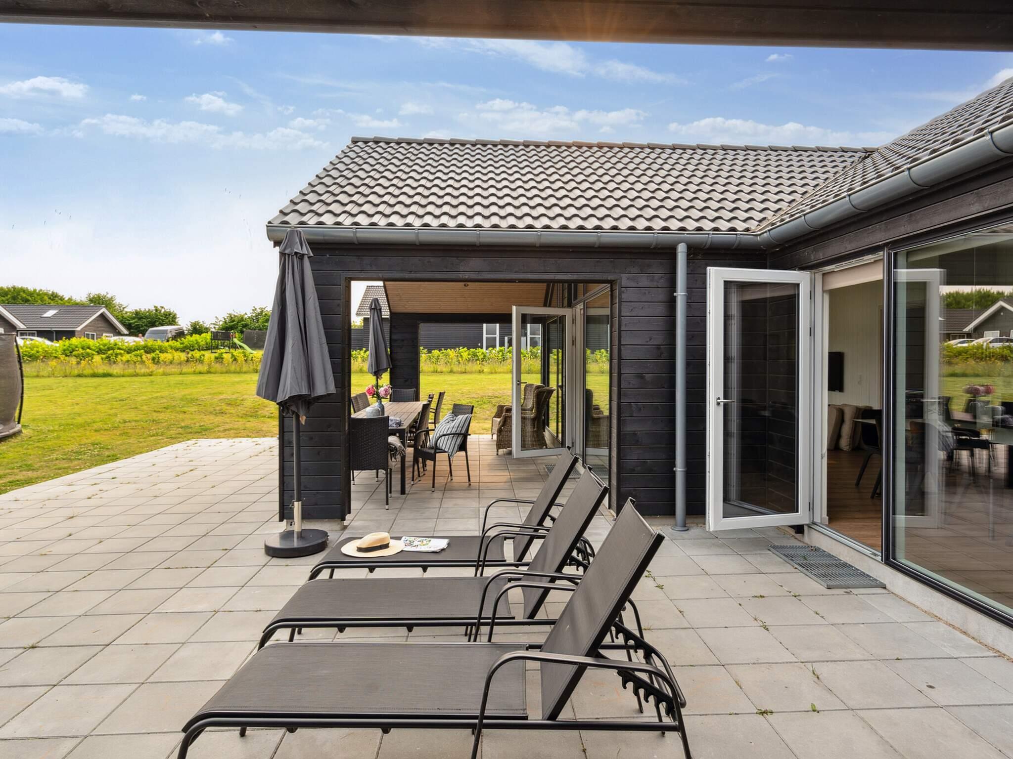 Husets udeareal byder også på et legeparadis for de mindste gæster. Med et legetårn, trampolin og gynge er timevis af sjov garanteret. Mens de yngste gæster leger, kan resten af ??gæsterne, hvis vejret tillader det, tilberede lækre måltider på husets grill eller slappe af på den delvist overdækkede terrasse med komfortable havemøbler.