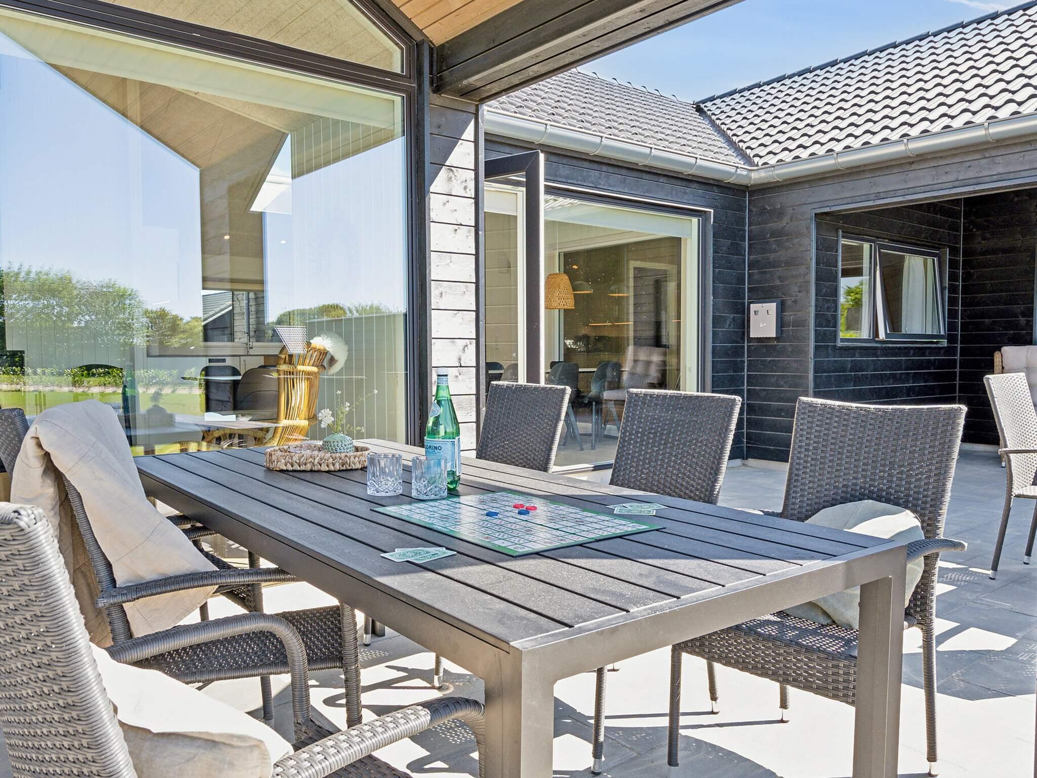 Hvis de danske vejrguder er med os, kan du nyde dine måltider på den delvist overdækkede terrasse. Her finder du også husets grill, som kan bruges til at tilberede dine feriemåltider.