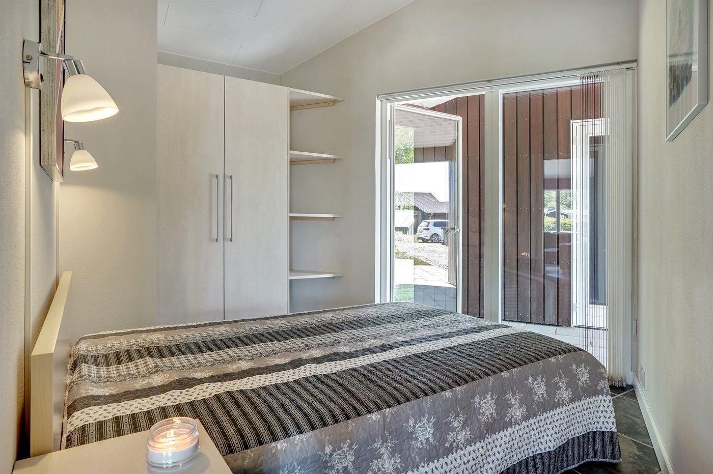 Der er i alt 3 soveværelser. Sovepladserne fordeler sig på: 4 sovepladser i dobbeltsenge. 2 sovepladser i køjeseng. Derudover er der 1 stk. barneseng.
