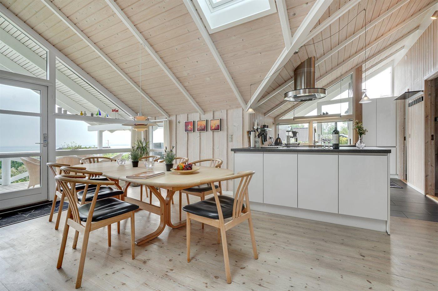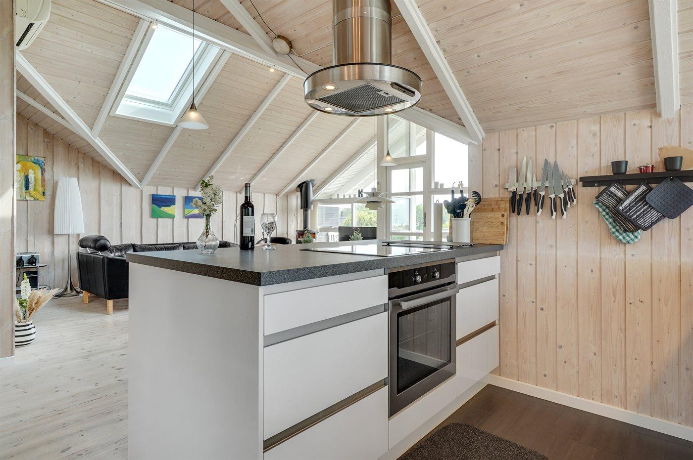 Køkkenet er udstyret med 1 køleskab. Der er 4 keramiske kogeplader, varmluftovn, mikrobølgeovn samt opvaskemaskine.
