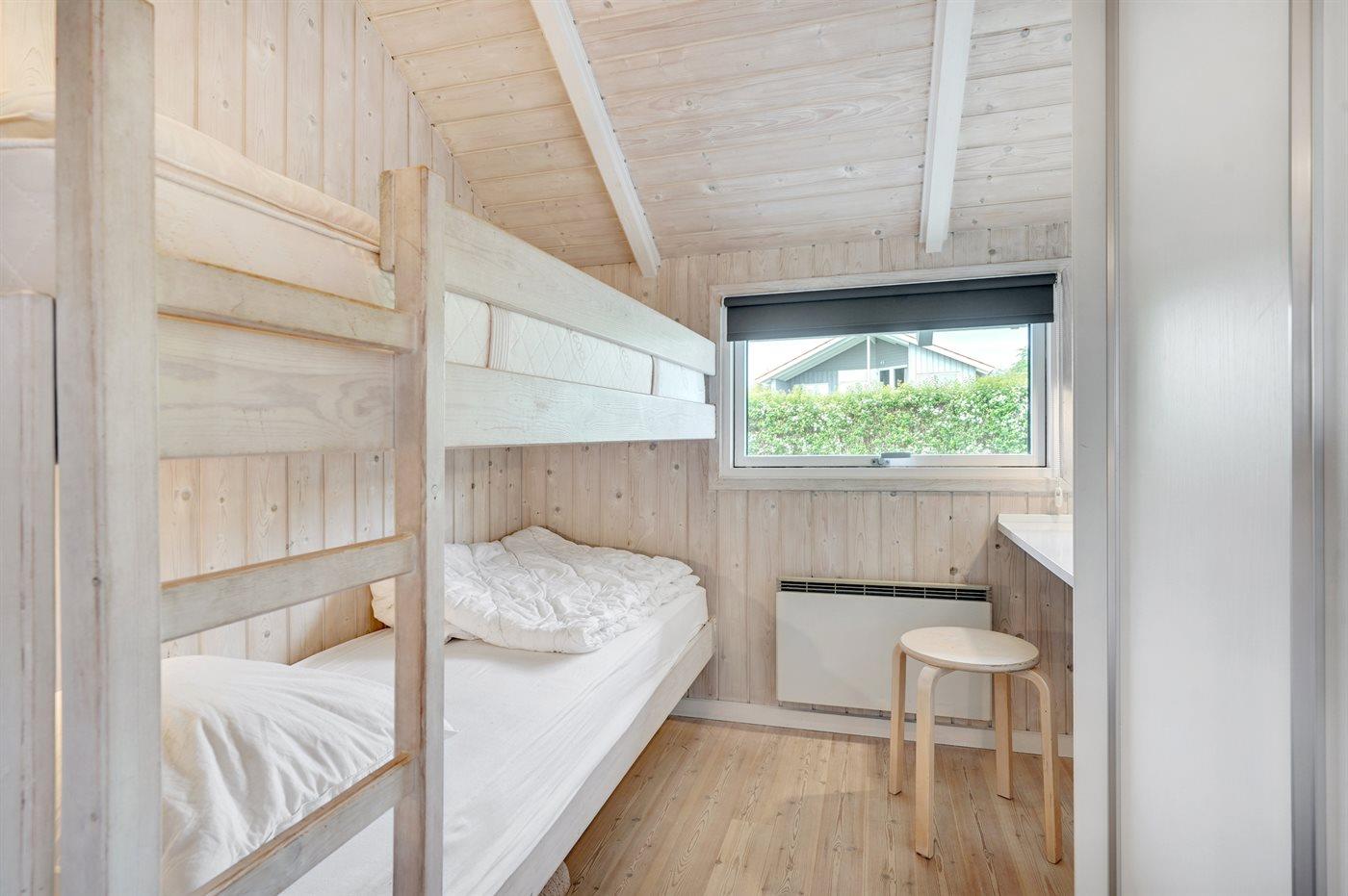 Der er i alt 4 soveværelser. Sovepladserne fordeler sig på: 6 sovepladser i dobbeltsenge. 2 sovepladser i køjeseng. Derudover er der 1 stk. barneseng.