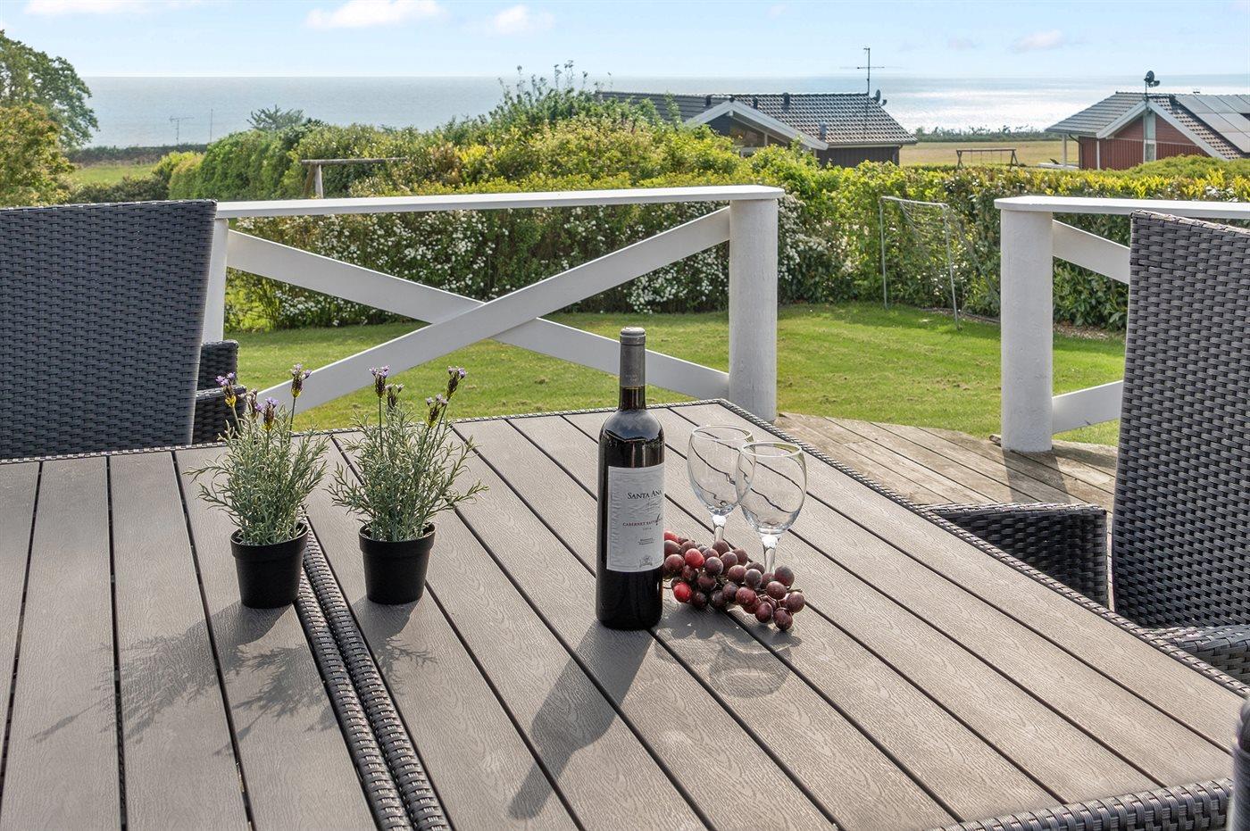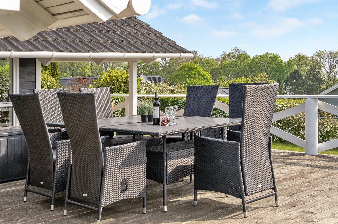 Ferieboligen er beliggende på en 826 m² stor havegrund. Der er 200 m til havet. Nærmeste forretning er beliggende i en afstand af 4000 m. Til ferieboligen hører 70 m² terrasseareal. Desuden er der 20 m² overdækket terrasse. Gynge. Sandkasse. Grill til rådighed. Parkering ved ferieboligen.