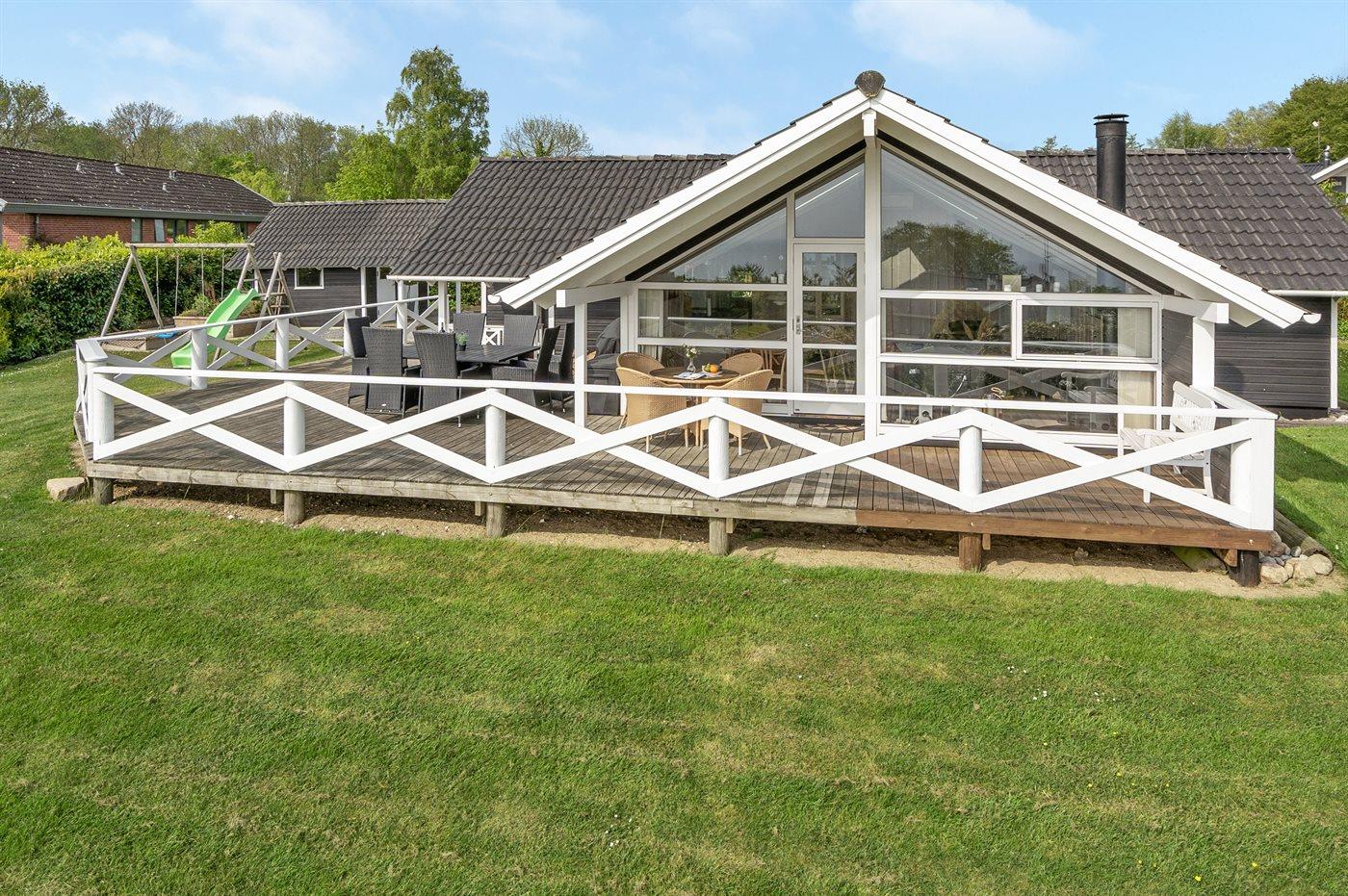 Skønt og velplejet sommerhus med enestående havudsigt over Lillebælt og mod det sydfynske øhav beliggende tæt på dejlig badestrand.