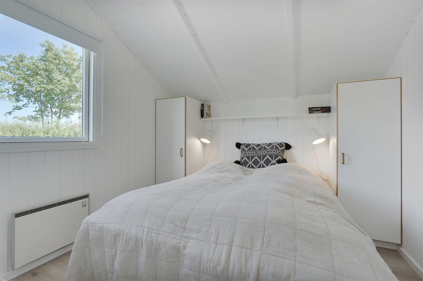 Der er i alt 3 soveværelser. Sovepladserne fordeler sig på: 4 sovepladser i dobbeltsenge. 1 soveplads i enkeltseng. Derudover er der 1 stk. barneseng.