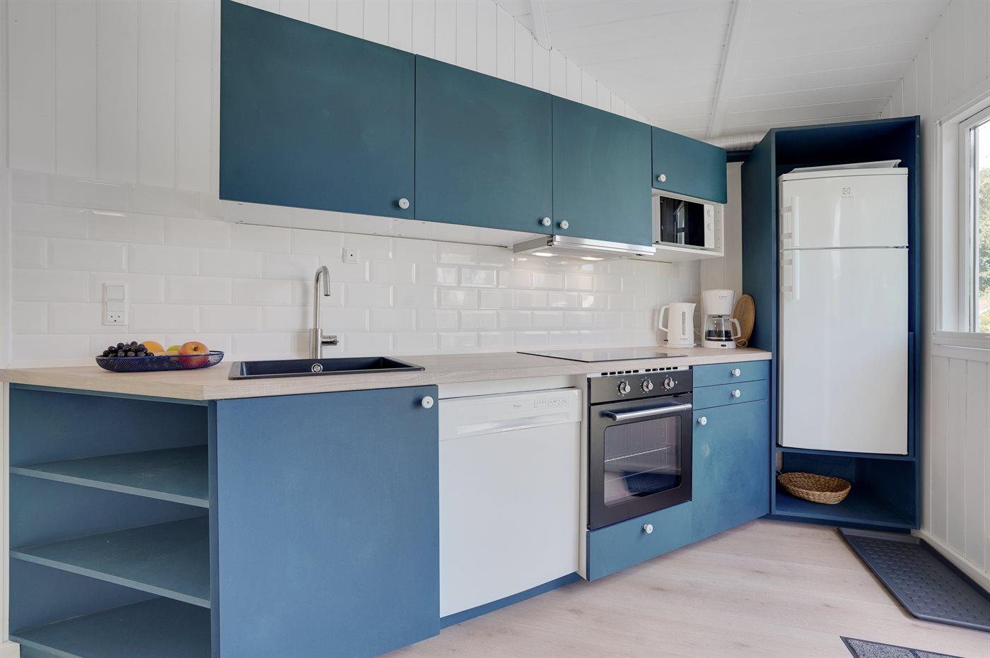 Køkkenet er udstyret med 1 køleskab. Der er 4 induktionskogeplader, varmluftovn, mikrobølgeovn samt opvaskemaskine. Der er også mælkeskummertil rådighed.