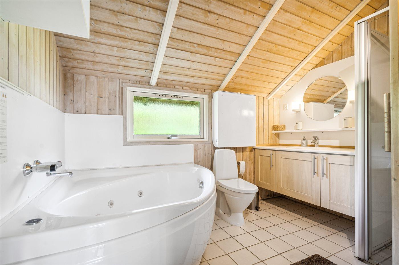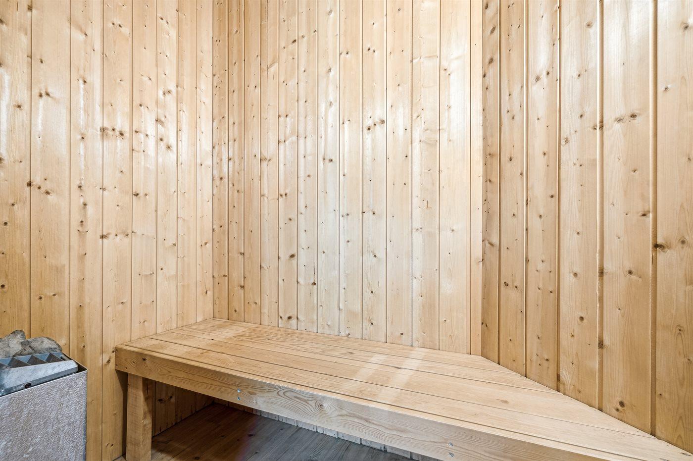 Der er 1 badeværelse med bruseniche og 1 toilet.. Der er gulvvarme på 1 badeværelse. I saunaen er der mulighed for afslapning.