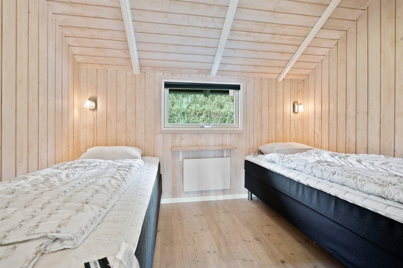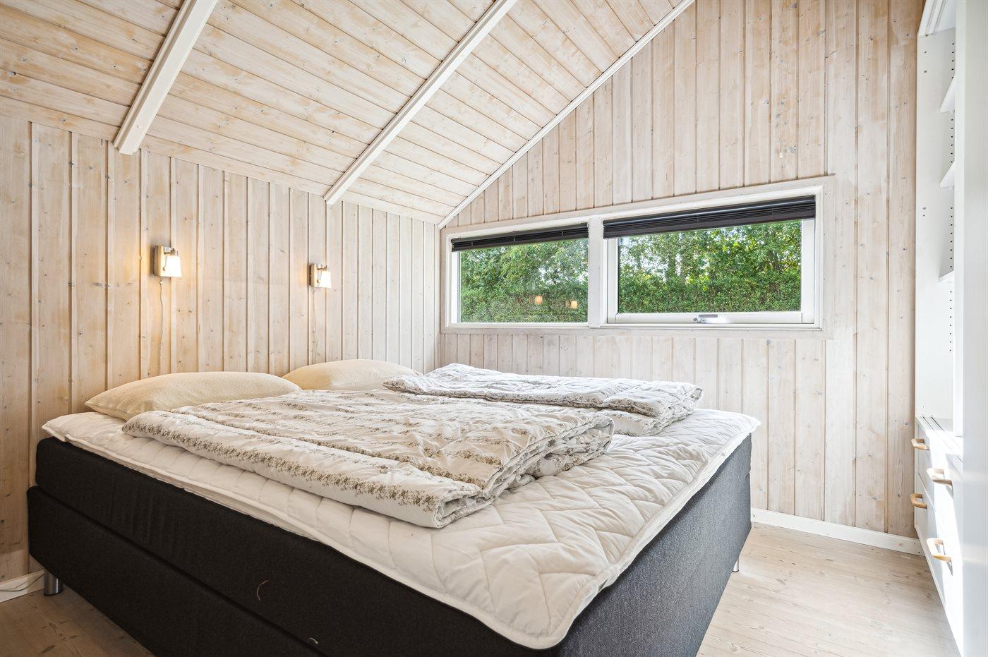 Der er i alt 3 soveværelser. Sovepladserne fordeler sig på: 4 sovepladser i dobbeltsenge. 2 sovepladser i enkeltsenge. 2 sovepladser i alkove. 2 af disse sovepladser befinder sig i stuen. Derudover er der 1 stk. barneseng.