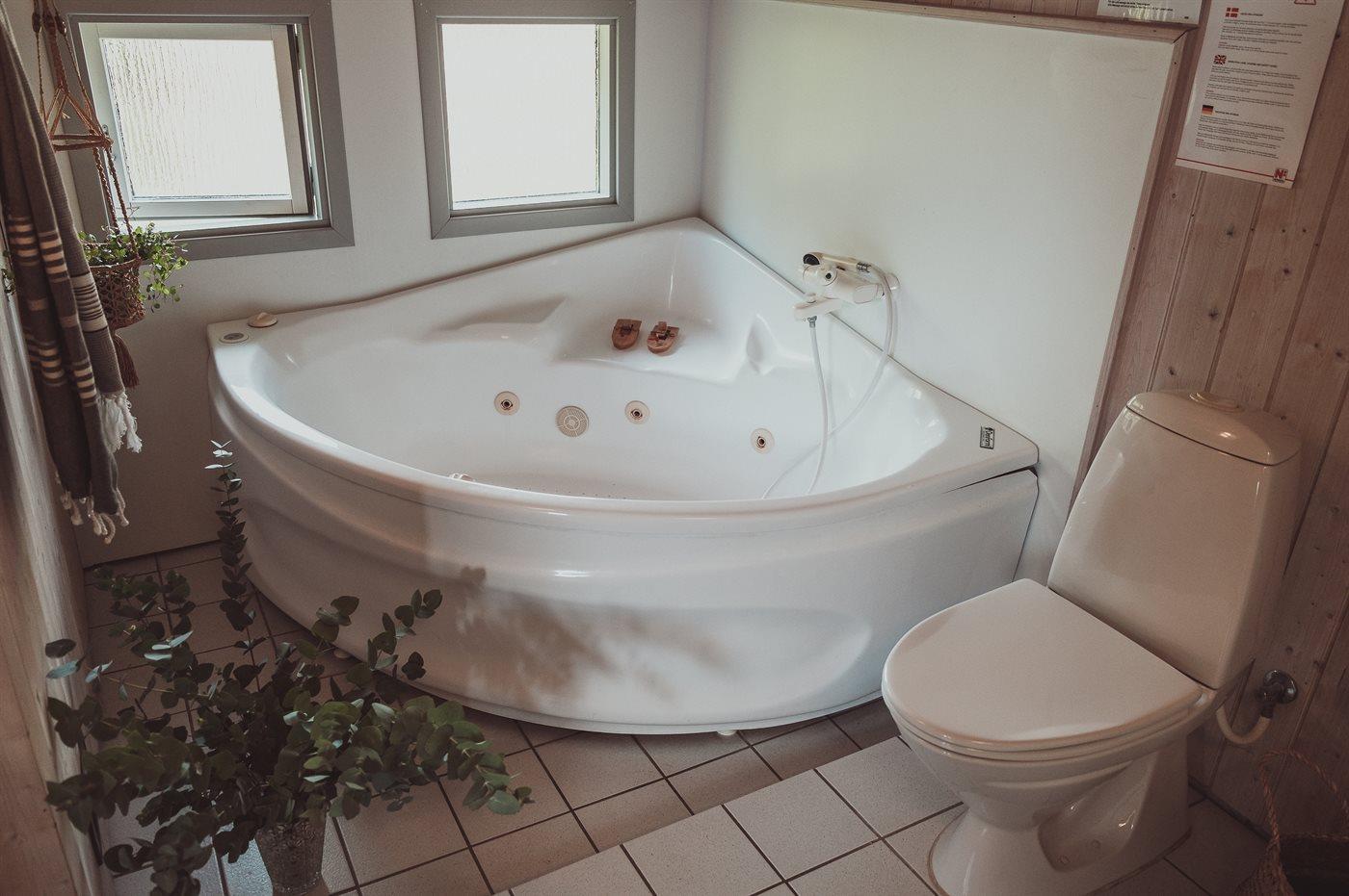 Der er 1 badeværelse med bruseniche og 2 toiletter, heraf 1 gæstetoilet. Der er gulvvarme på 1 badeværelse. I saunaen er der mulighed for afslapning.