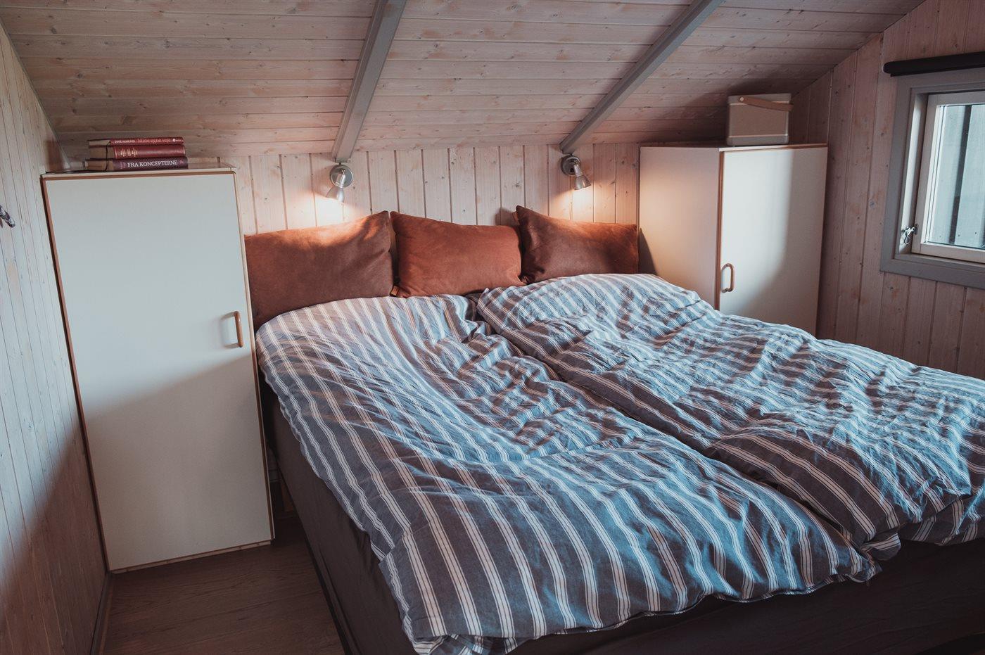 Der er i alt 4 soveværelser. Sovepladserne fordeler sig på: 4 sovepladser i dobbeltsenge. 4 sovepladser i enkeltsenge. Derudover er der 1 stk. barneseng.