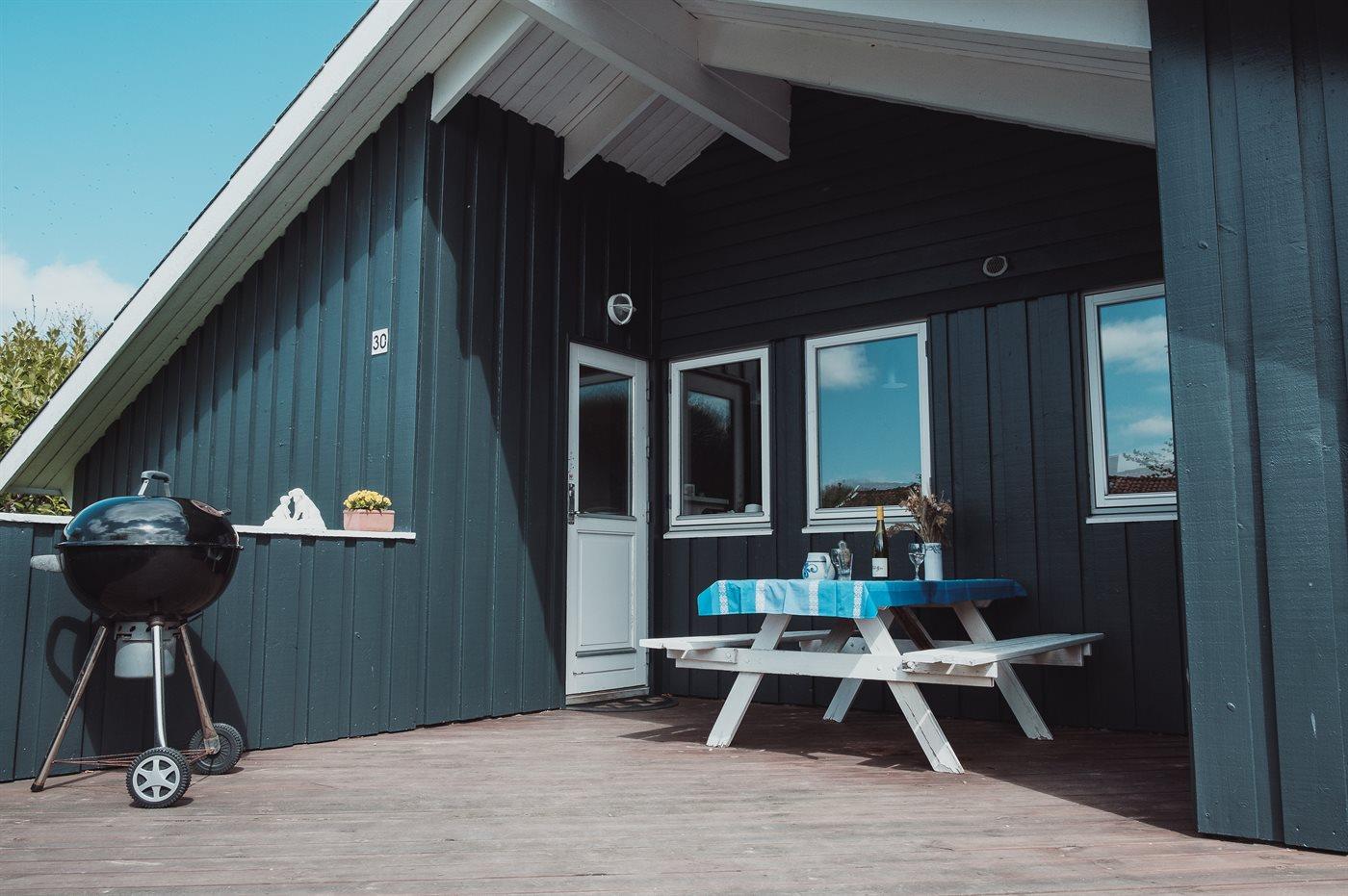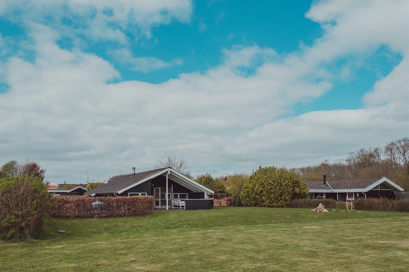 Ferieboligen er beliggende på en 800 m² stor havegrund. Der er 100 m til havet. Nærmeste forretning er beliggende i en afstand af 4000 m. Til ferieboligen hører åbent terrasseareal. Desuden er der overdækket terrasse. Sandkasse. Grill til rådighed. Parkering ved ferieboligen.