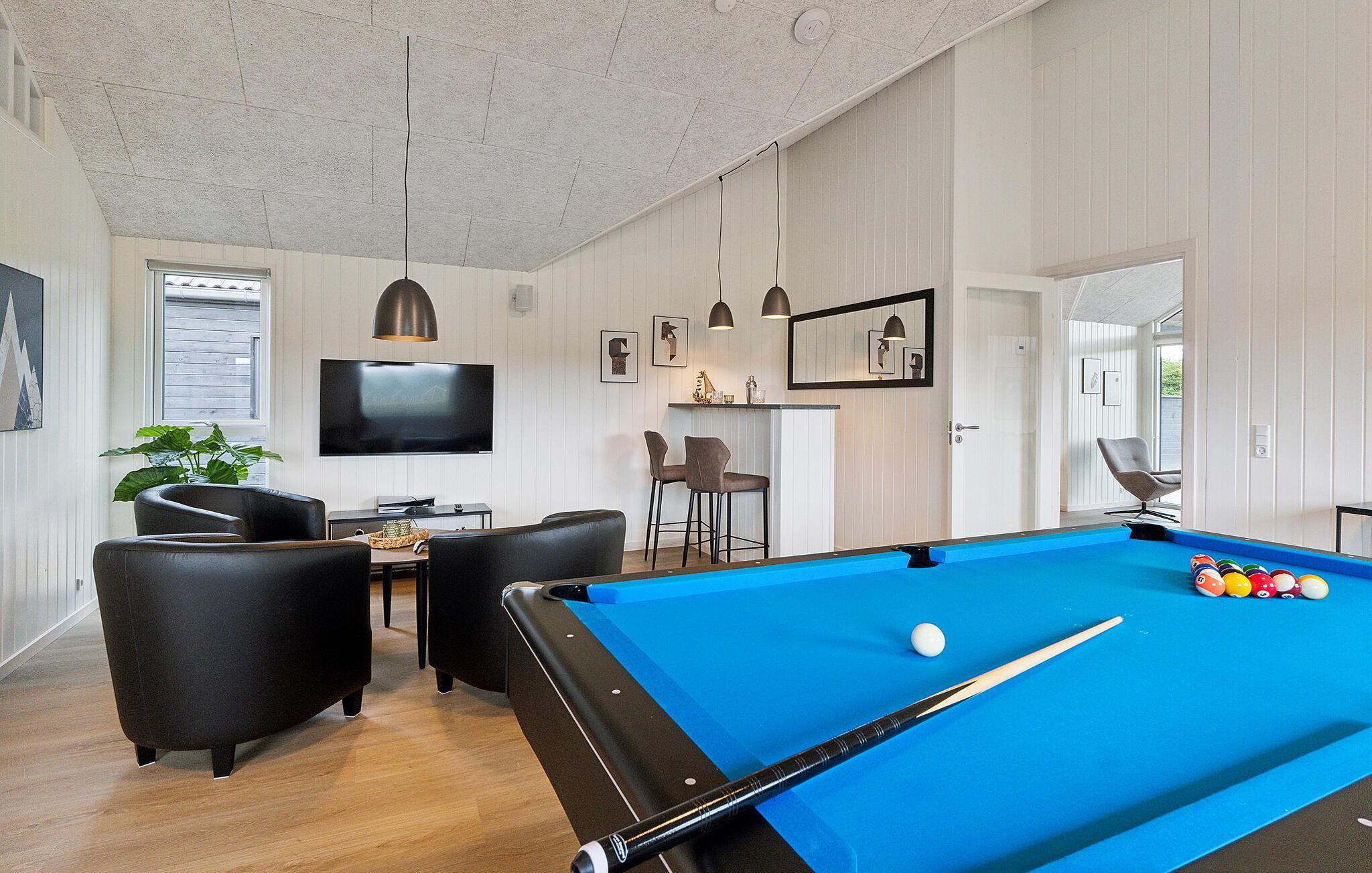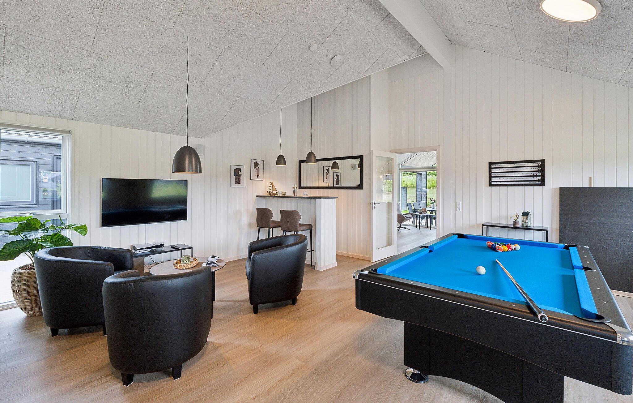 Tag den udvidede familie eller flere vennefamilier under armen og rejs til Als, hvor der venter jer et fantastisk ophold i dette lækre feriehus. Her kan I se frem til en bolig med masser af plads, en flot, moderne indretning og masser af faciliteter, der gør det umuligt at kede sig. Huset består af to fløje med aktivitetsrum, sauna og pool, der indbyder til masser af sjov for hele familien. Uanset vejret kan I lade børnene plaske rundt i poolen, mens I spiller billard eller kræser om maden i det veludstyrede køkken. Dæk op til det helt store festmåltid i stuen og rund en vidunderlig dag af med et godt glas vin over et brætspil i sofahjørnet.
