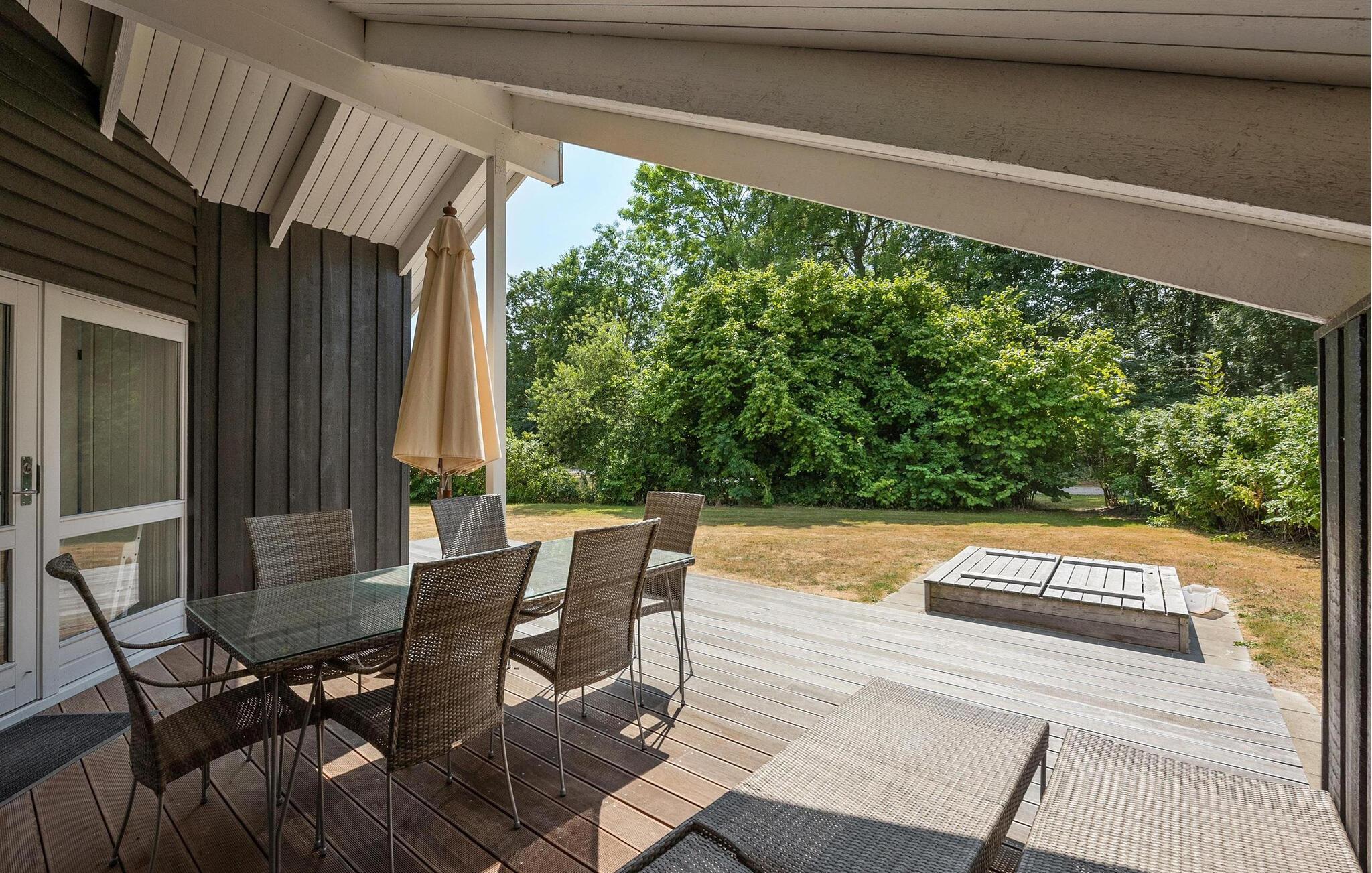 Dette lyse og indbydende feriehus tilbyder en atmosfære, der opfylder alle ønsker. Den store stue med tilhørende køkken er det perfekte sted til fælles madlavning, spil eller afslappende stunder. Slip hverdagen og slap af i saunaen, eller nyd solen på terrassen. Mens jeres børn leger i sandkassen, kan I gøre grillen klar til en hyggelig middag. Om aftenen sætter bålfadet den perfekte ramme for en afslappet dag.