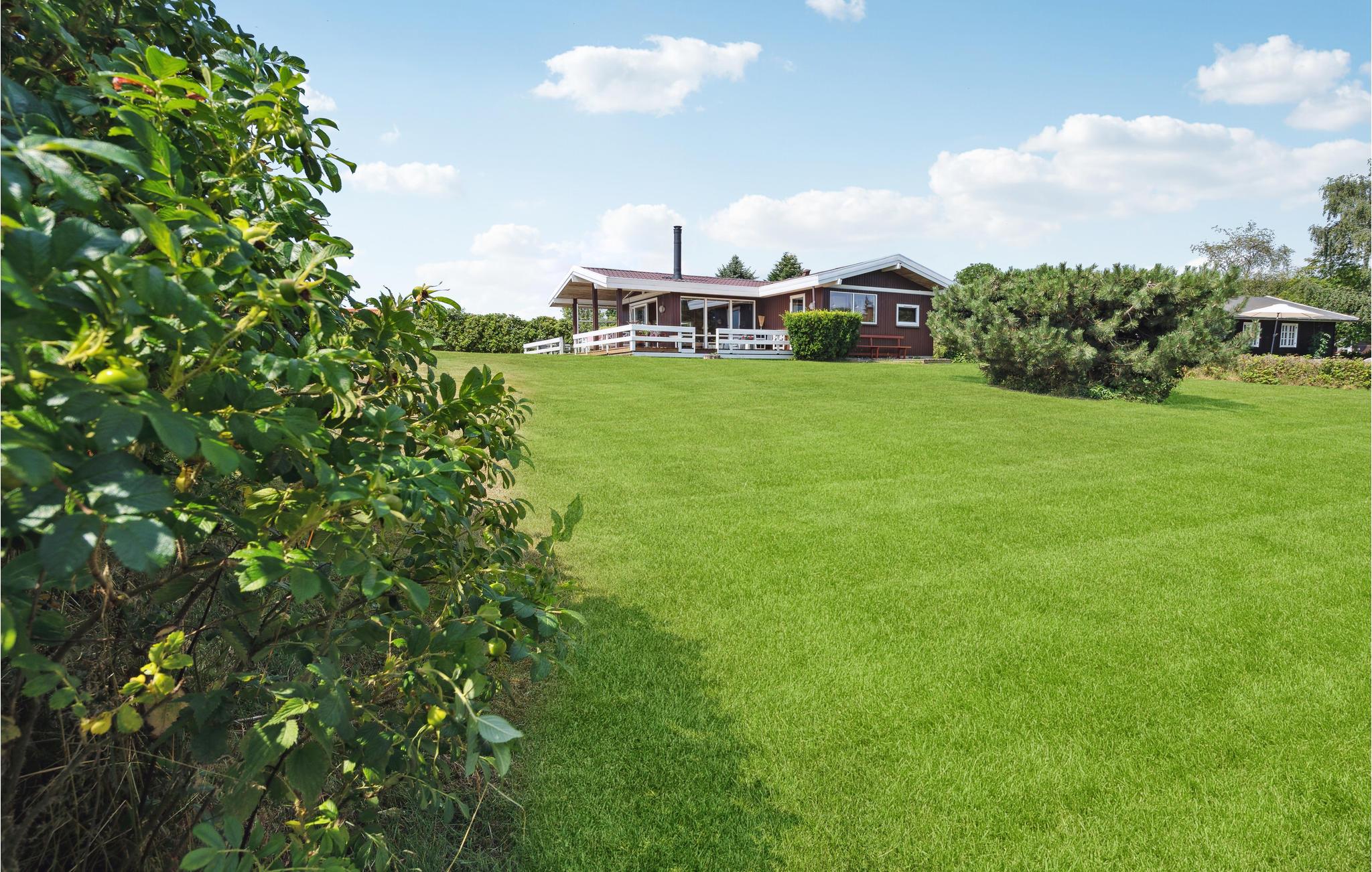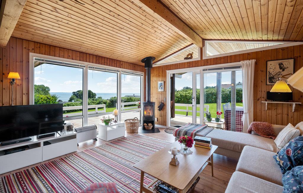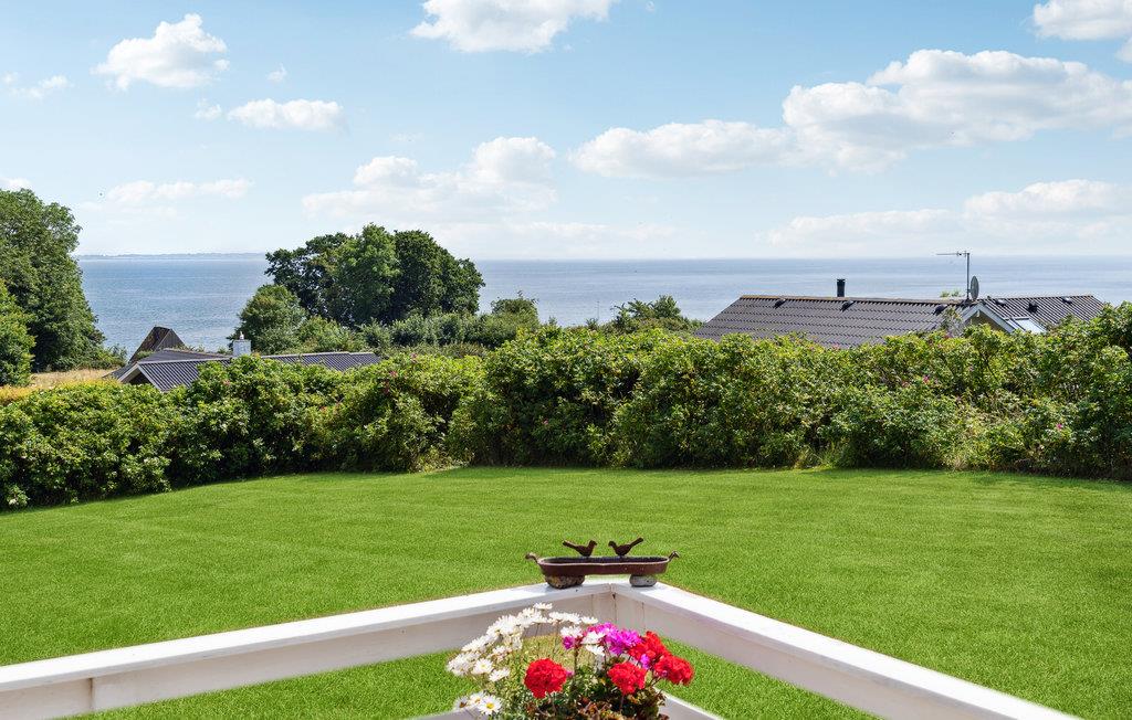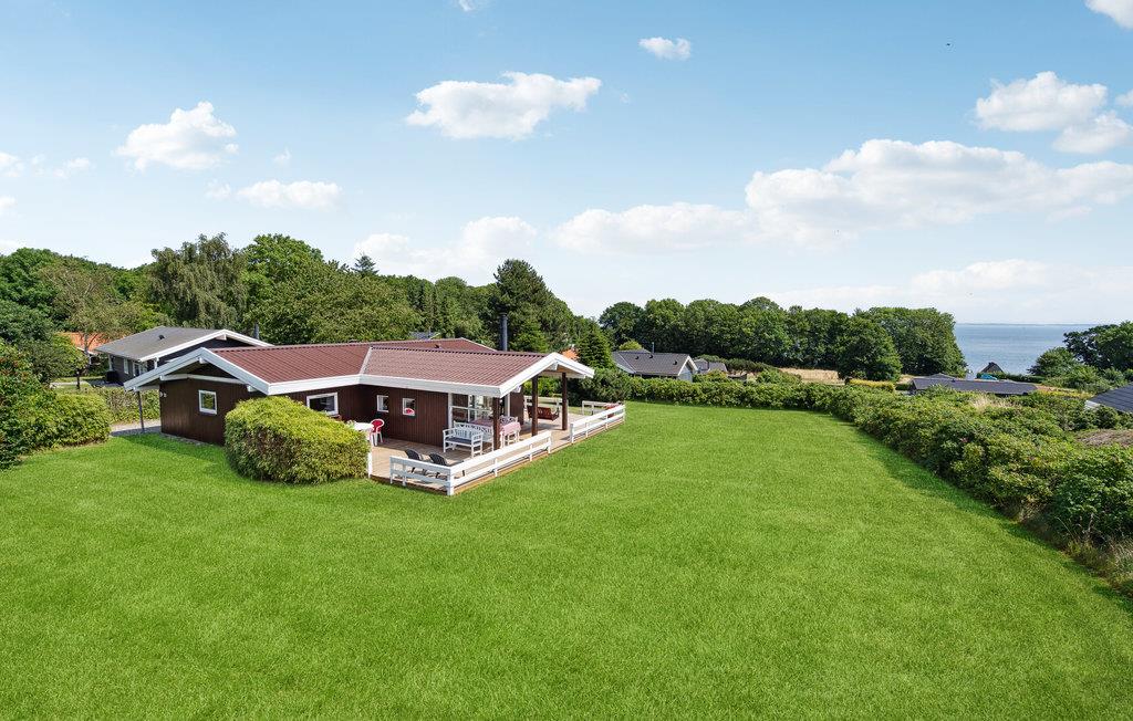Hyggeligt feriehus med havudsigt, stor terrasse og sauna nær Mommark Strand på Sydals.