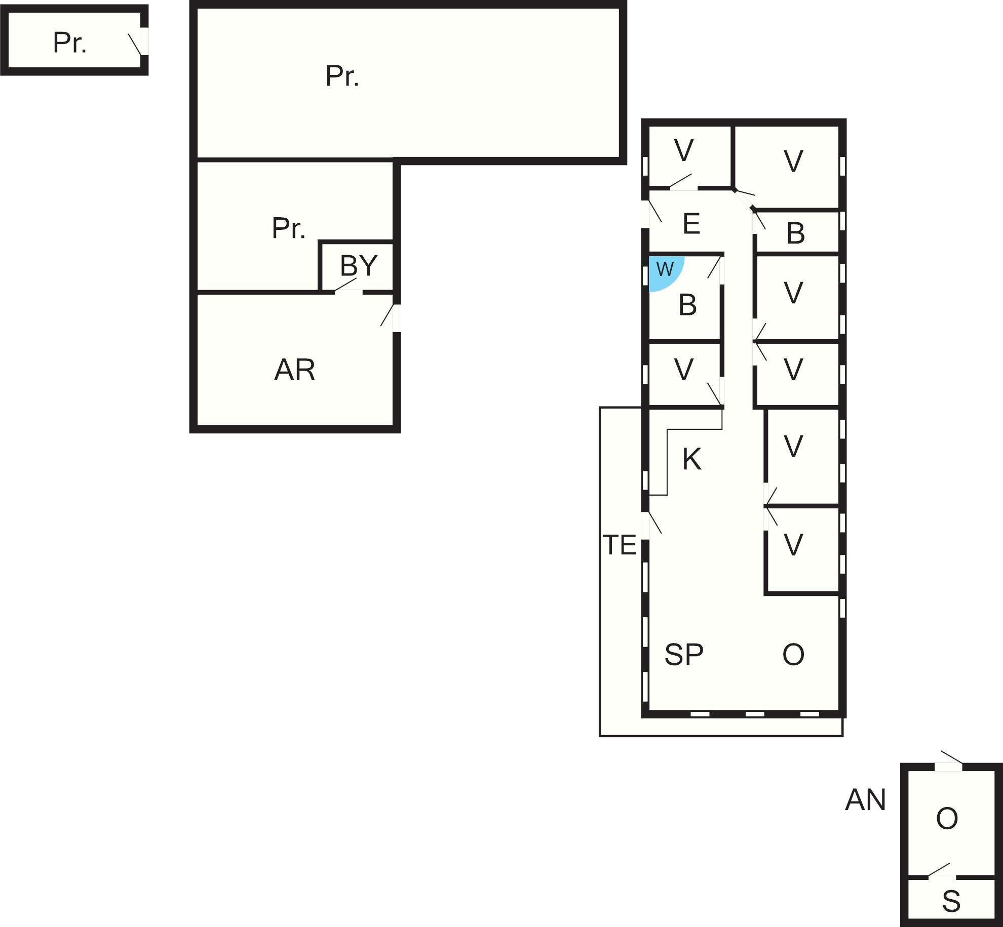 7 Soveværelser: (1DS)+(1DS)+(1DS)+(1DS)+(1DS)+(1DS+1K)+(1DS+1K)