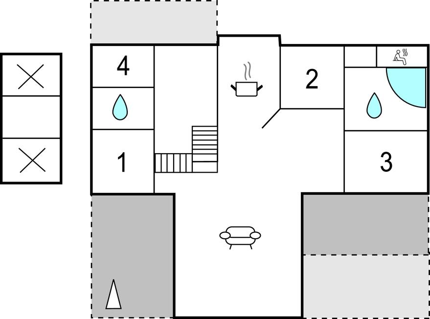 Soveværelse (nr. 4) - 2 Sovepladser. (Enkeltseng(e)).