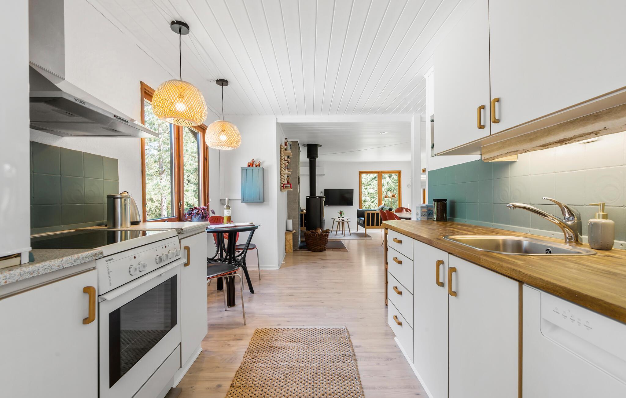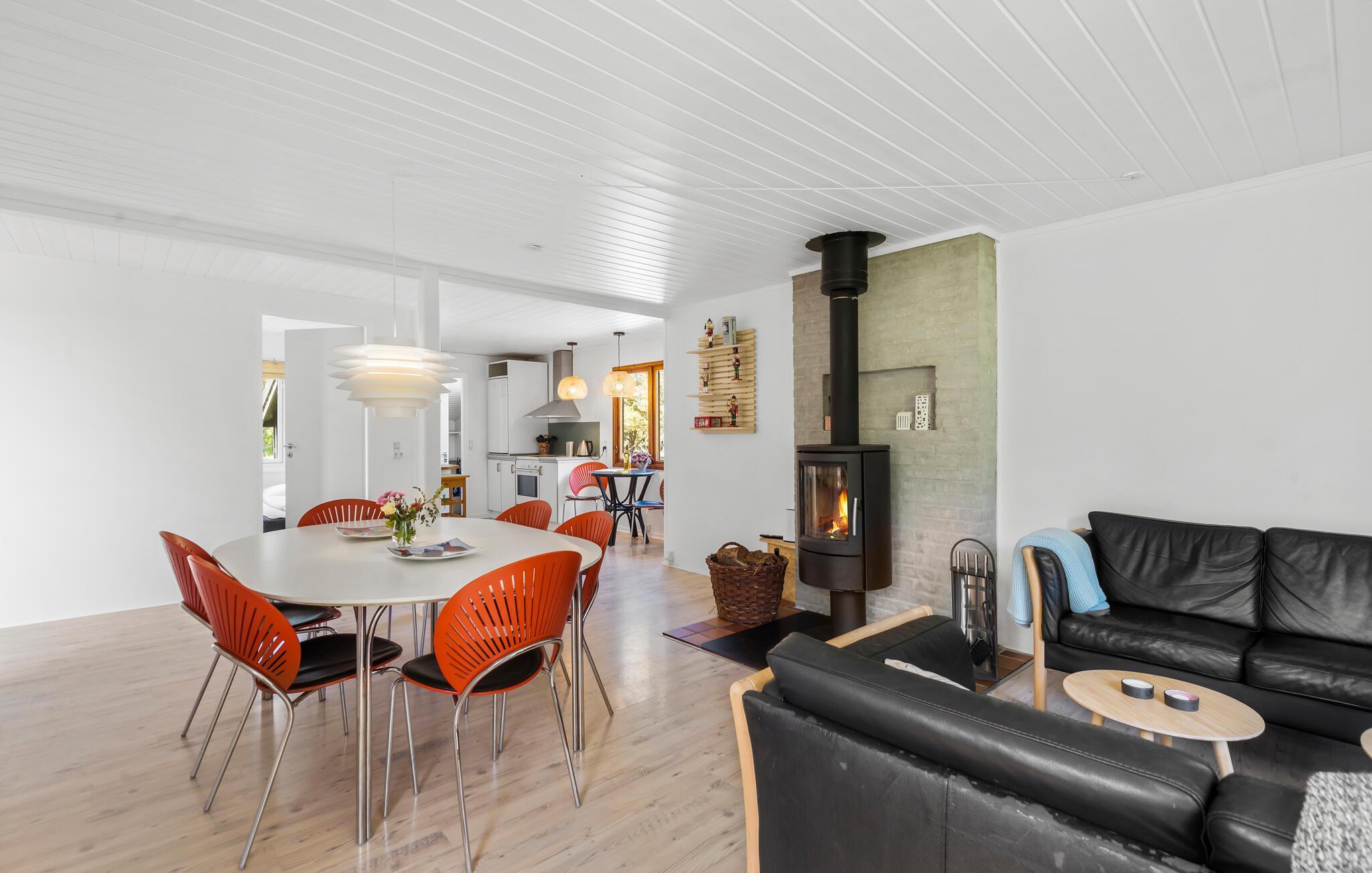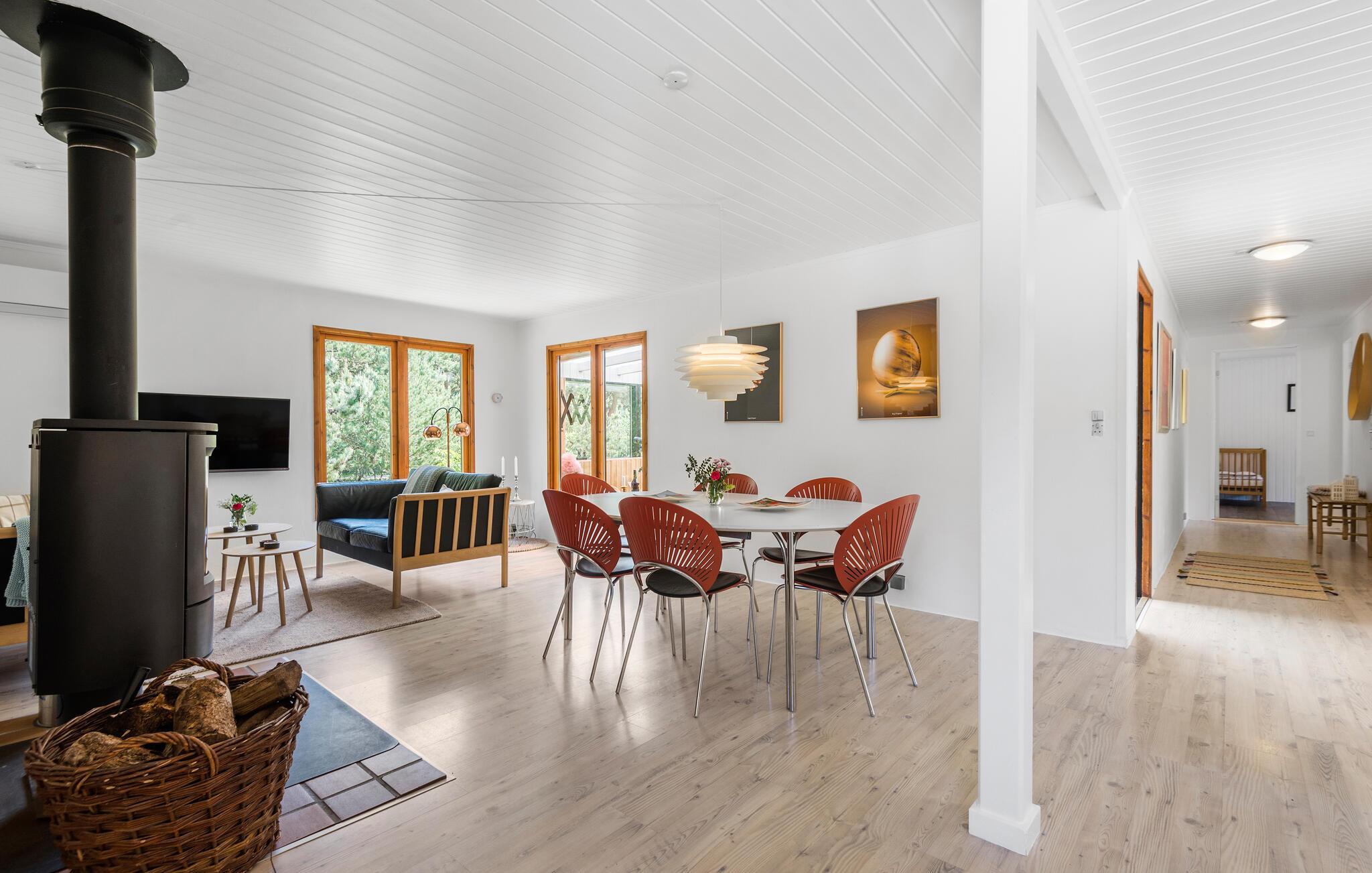 Tag på ferie med hele familien eller flere familier sammen i dette veludstyrede feriehus, der ikke kun byder på masser af plads, men også på rigtig mange sjove aktiviteter. Det smukke og lyse miljø i opholdsrummene indbyder til at bruge tid sammen i køkkenet eller i stuen, hvor I kan føle jer hjemme, lave mad, spise og slappe af i sofaen. Brændeovnen sørger for en behagelig varme, når I ser en god film sammen. Glæd jer også over swimmingpoolen, hvor både store og små kan bade, eller nyd wellnessmulighederne i spabadet og saunaen. Og hav det sjovt sammen i udestuen.