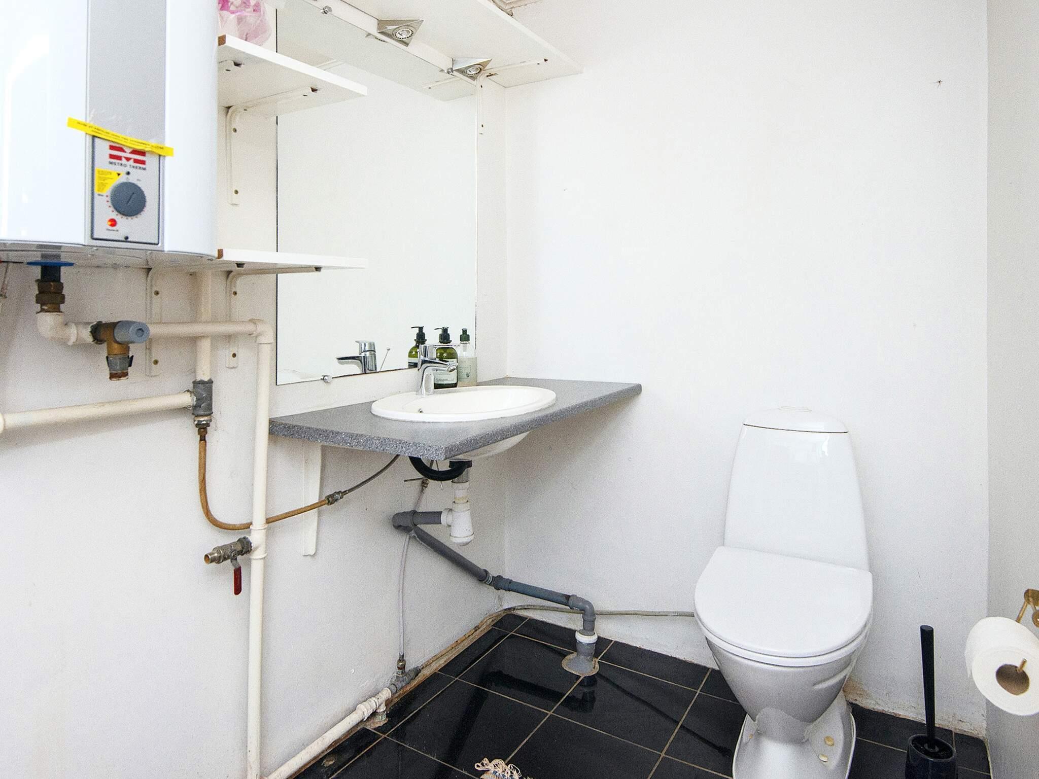 Huset har stort soveværelse med tre senge og for enden af køkkenet finder I yderligere to senge (bemærk at det er ét stort rum).