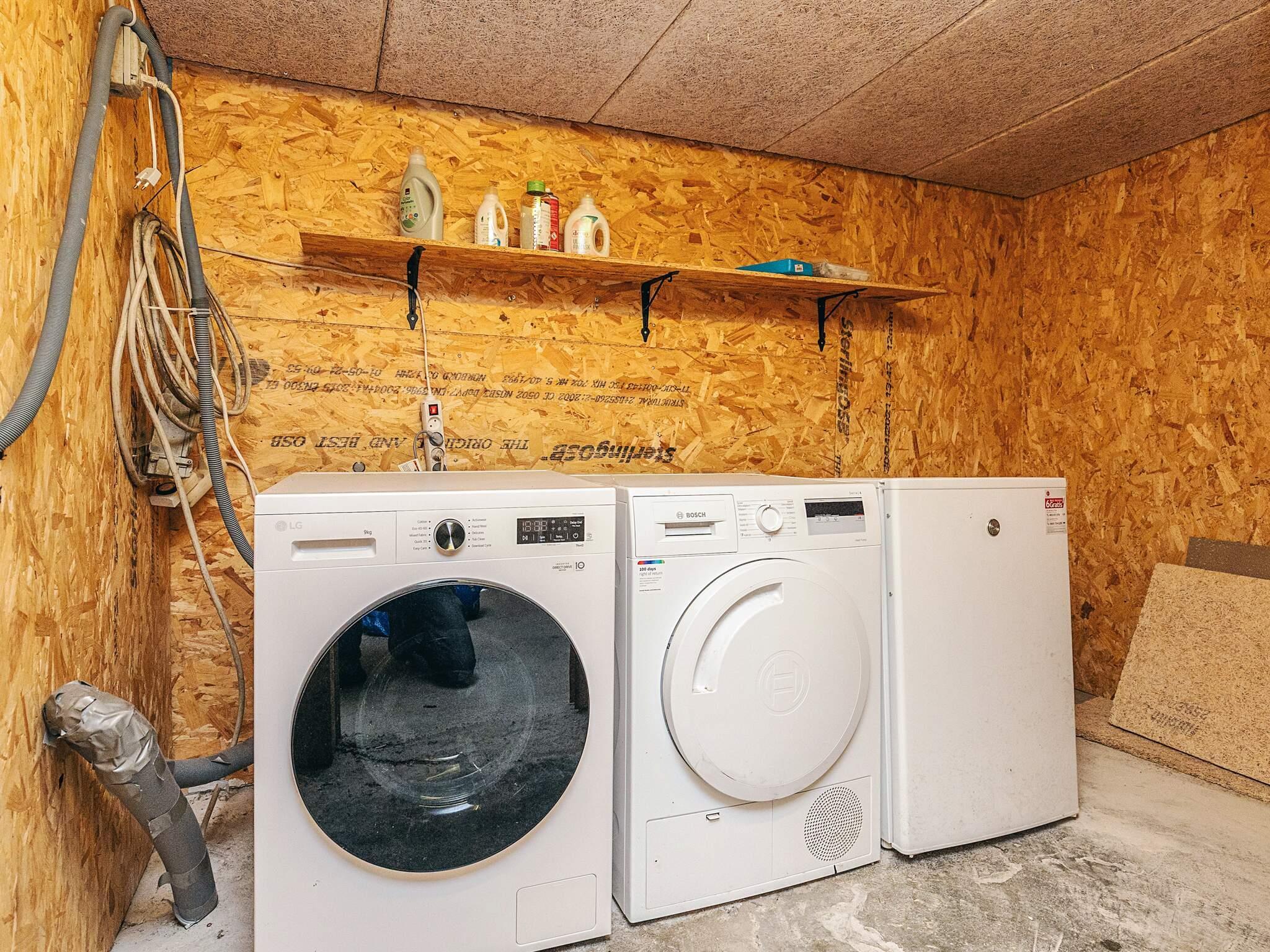 Der er et skur med fryser, vaskemaskine og tørretumbler. Hyggelig grund med terrasse og have til afslapning.