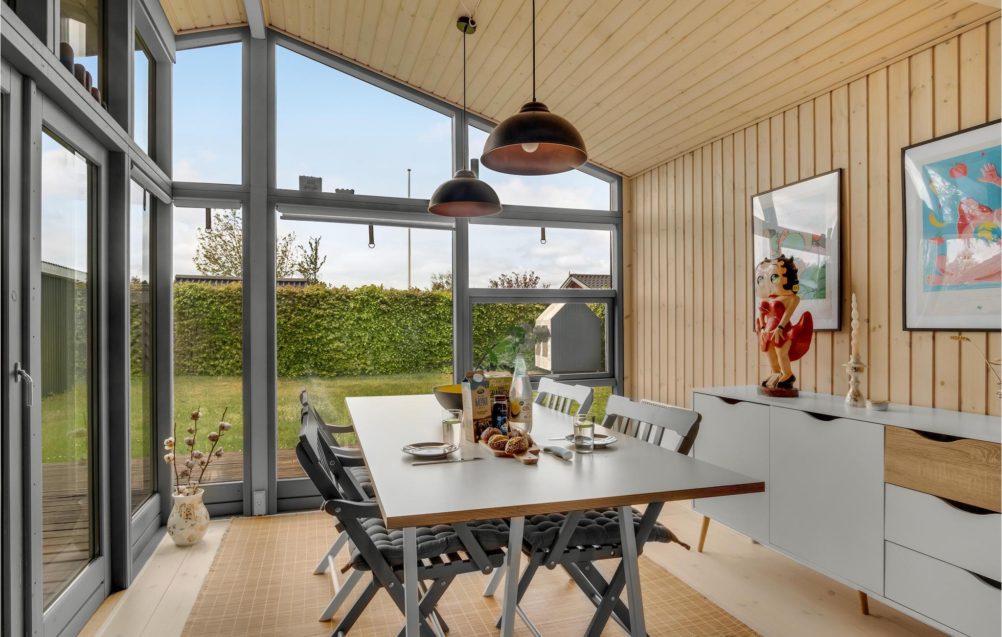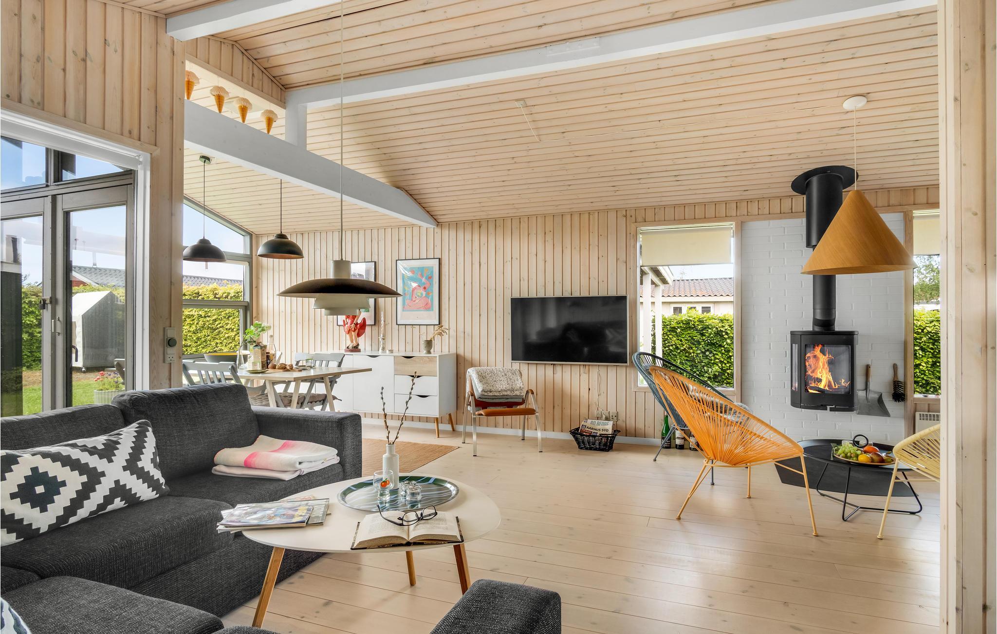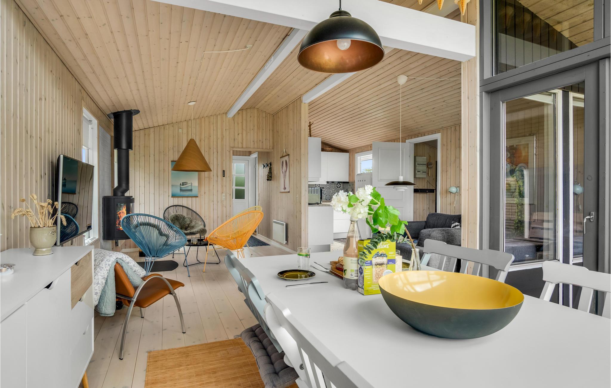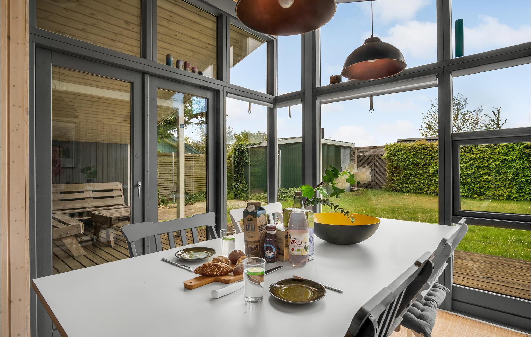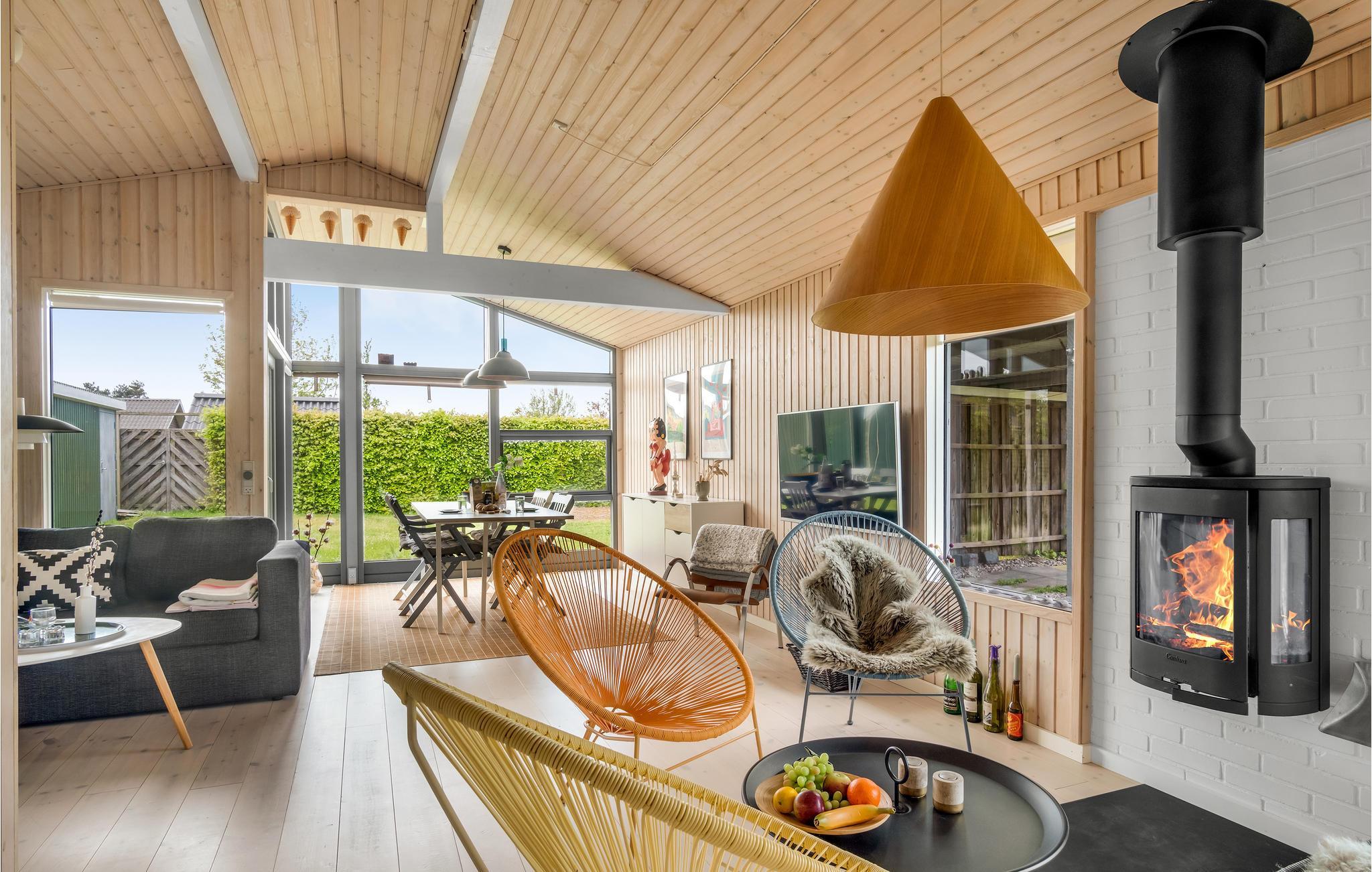 Kommen Sie mit Ihrer kleinen Familie hier an und fühlen sich wohl. Das lichtdurchflutete und kompakte Haus ist eine wahre Ruheoase, die Sie zum gemeinsamen Genießen Ihrer Urlaubstage einlädt. Versammeln Sie sich am Abend um den Kaminofen oder machen Sie es sich bei einem unterhaltsamen Film vor dem Fernseher bequem. Das Esszimmer gibt Ihnen durch die umgebenden Fenster das Gefühl im Garten zu sitzen und Ihre Mahlzeiten zu genießen. Am Nachmittag oder auch den Abenden können Sie es sich auf den Gartenmöbeln auf der überdachten Terrasse gemütlich machen und die Abende ausklingen lassen.