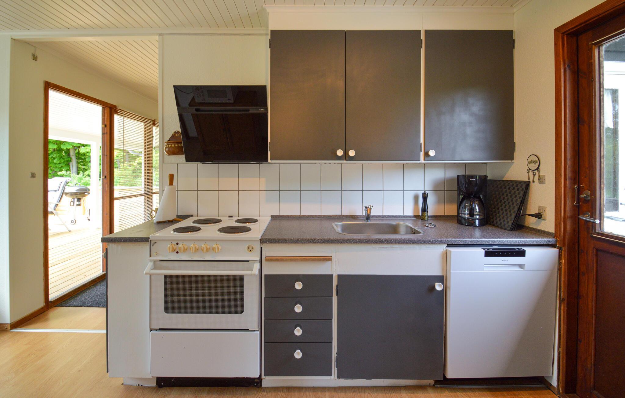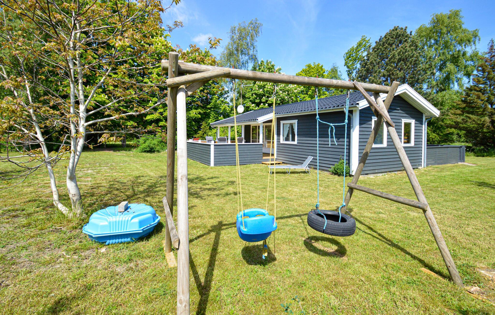 Træd ud på den store træterrasse med en velduftende kop kaffe, når dagens første solstråler viser sig, og nyd udsigten over haven. Spis morgenmad sammen, inden I fordyber jer i en bog, mens børnene leger i haven eller gynger. Om aftenen kan I gøre nogle saftige grillspyd klar på grillen og afslutte dagen med et glas vin.